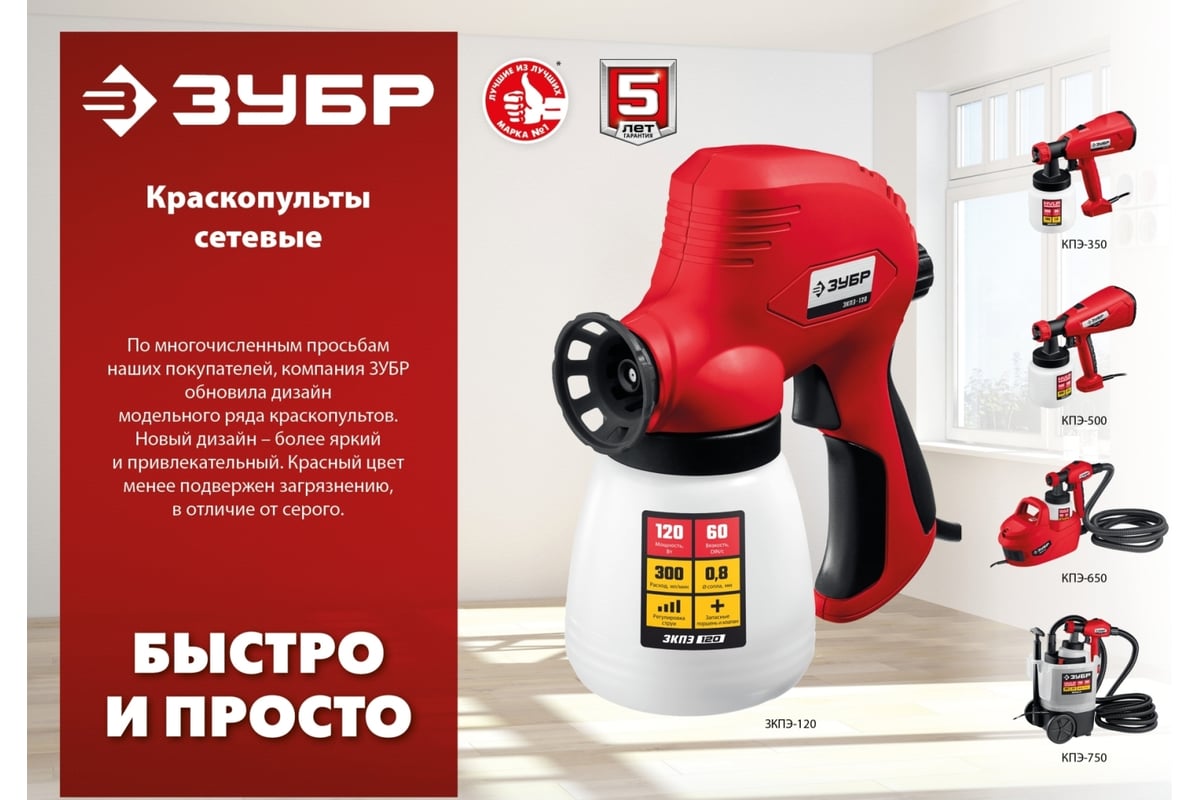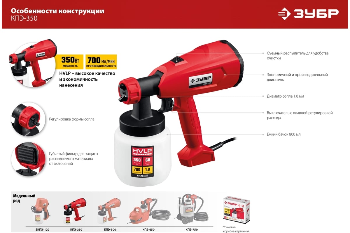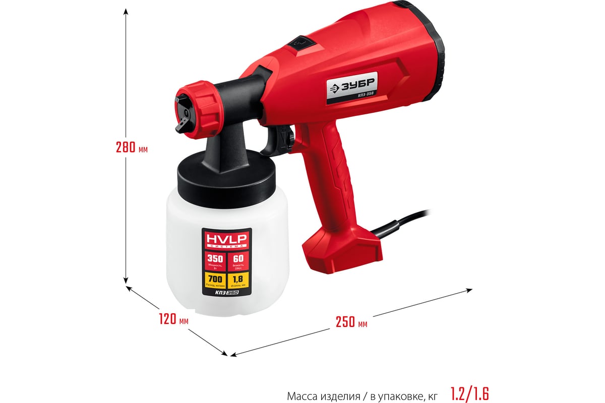 КРАСКОПУЛЬТ электрический 350 Вт 0,7 л/мин нижний бачок 0,8 л КПЭ-350 ЗУБР