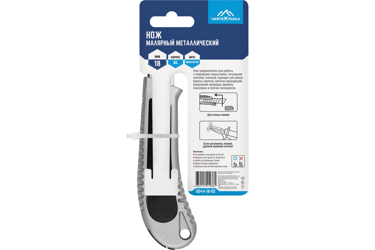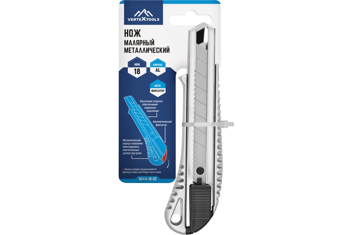 НОЖ строительный 18 мм сегментированное лезвие металлическая ручка фиксатор защелка усиленный VERTEXTOOLS