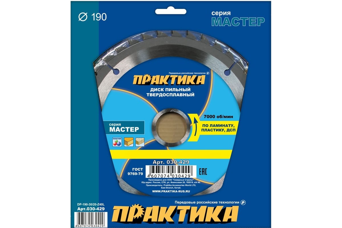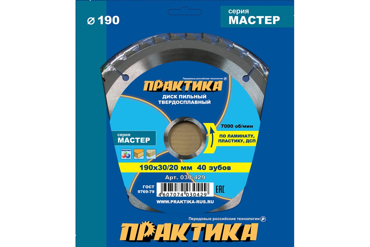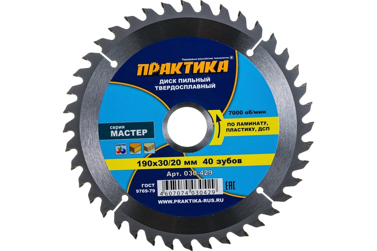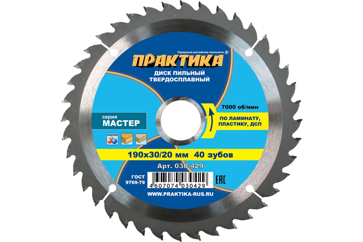 ДИСК пильный 190х2,8х30/20/16 мм по ламинату 40 зубов ПРАКТИКА