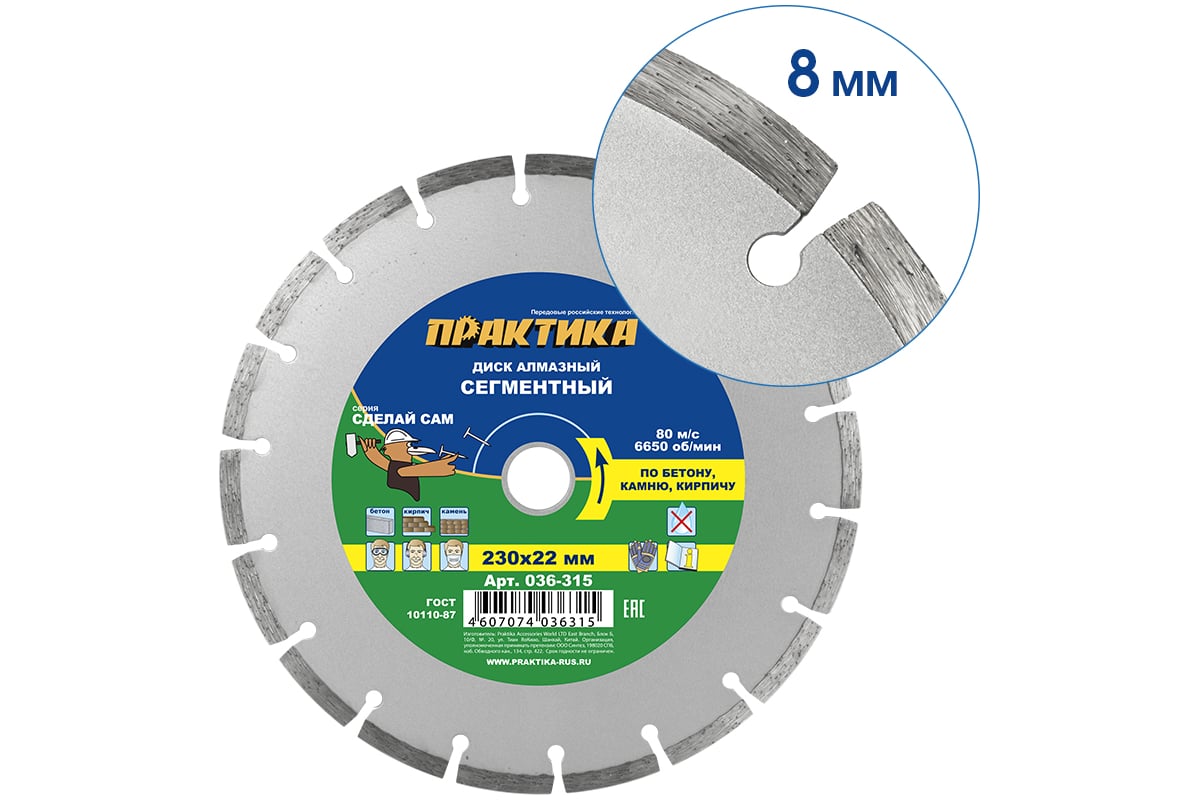 ДИСК алмазный 230х2,0х22,2 мм по бетону сегментный 18 сегментов ПРАКТИКА