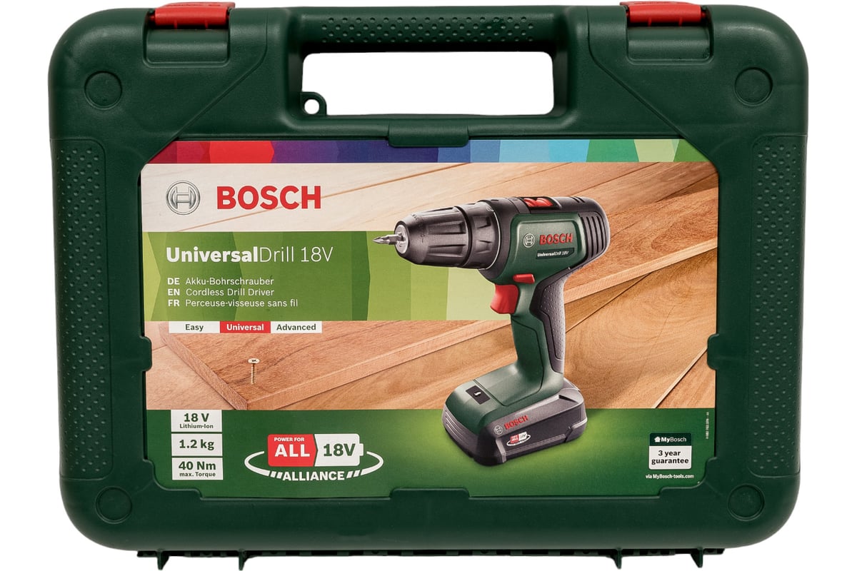 ШУРУПОВЕРТ аккумуляторный 10 мм 18 В 1х1,5 Ач Li-lon Universaldrill BOSCH