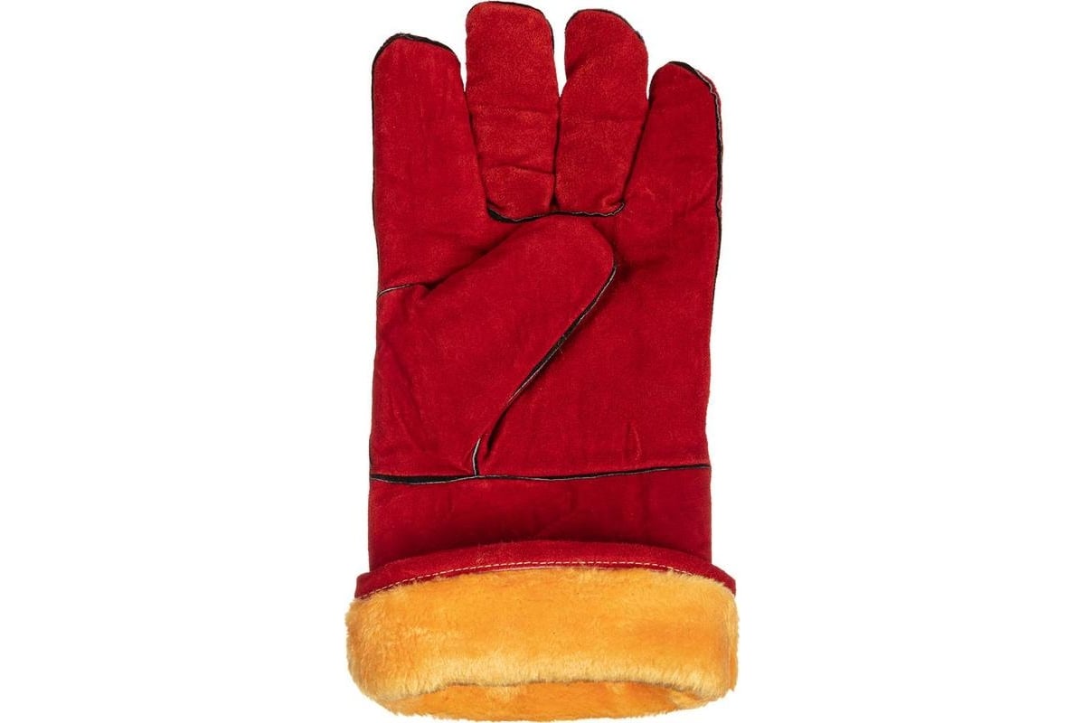 КРАГИ сварщика пятипалые спилок с подкладом цв. красный