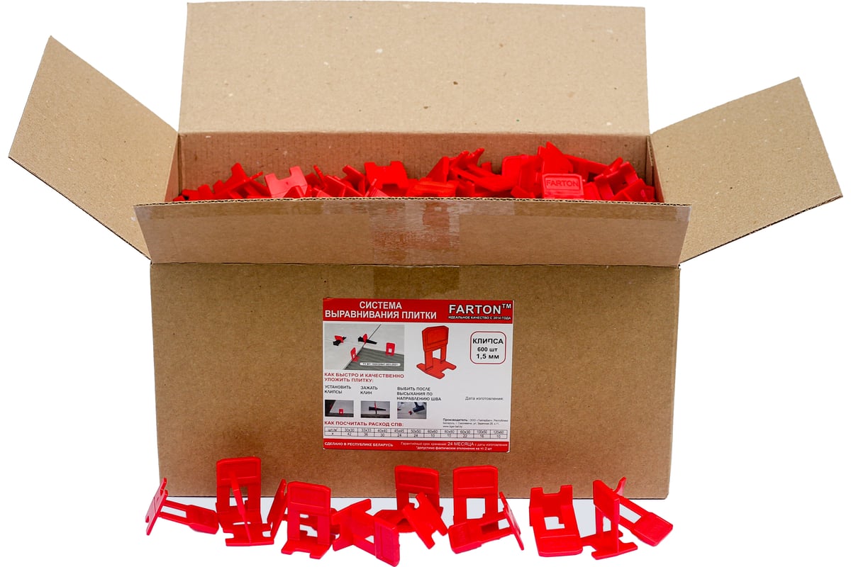СИСТЕМА выравнивания плитки СВП зажимы и клинья 1,5 мм 600 шт FARTON