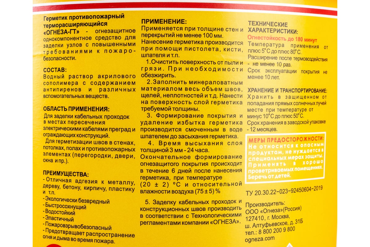 ГЕРМЕТИК акриловый огнезащитный терморасширяющийся 3 кг цв. серый