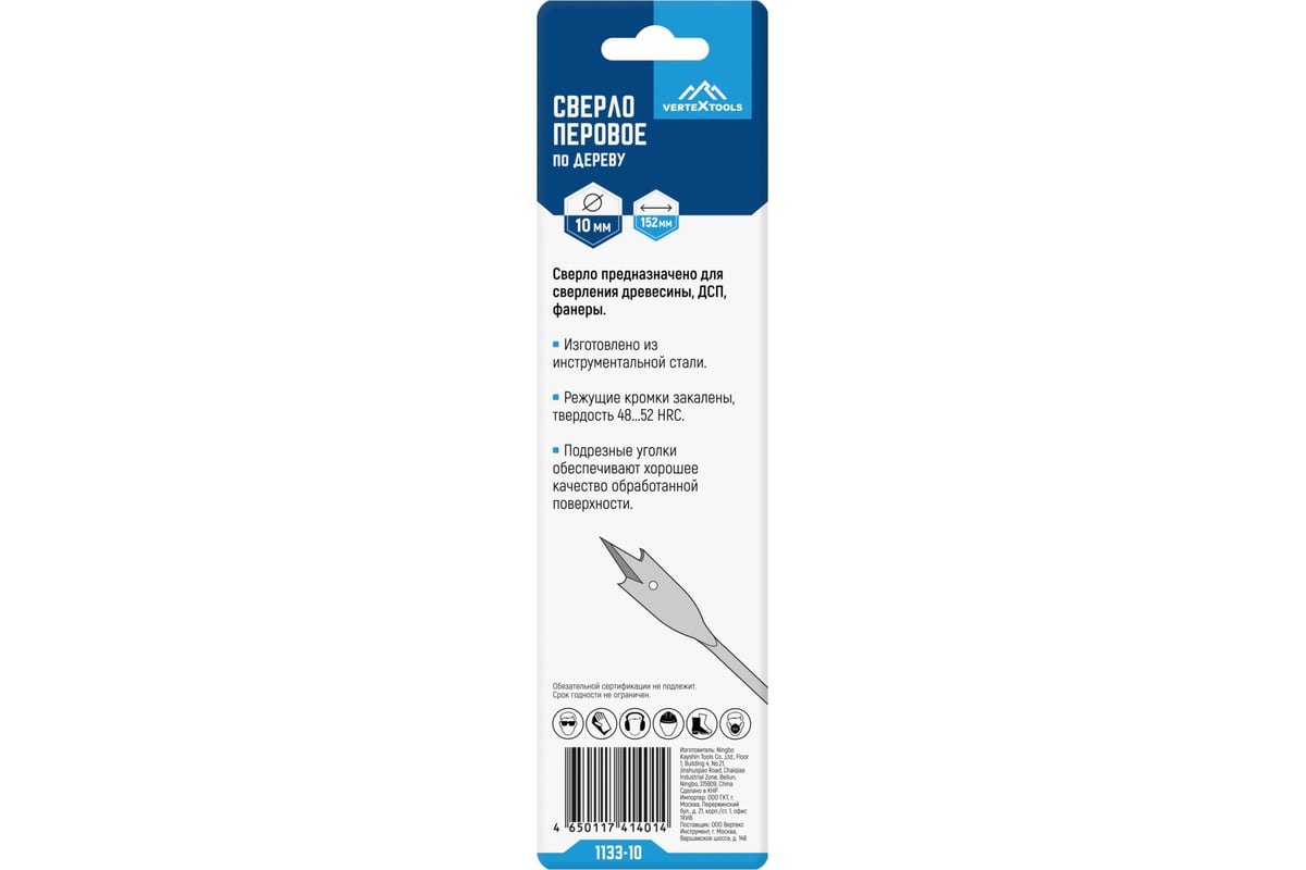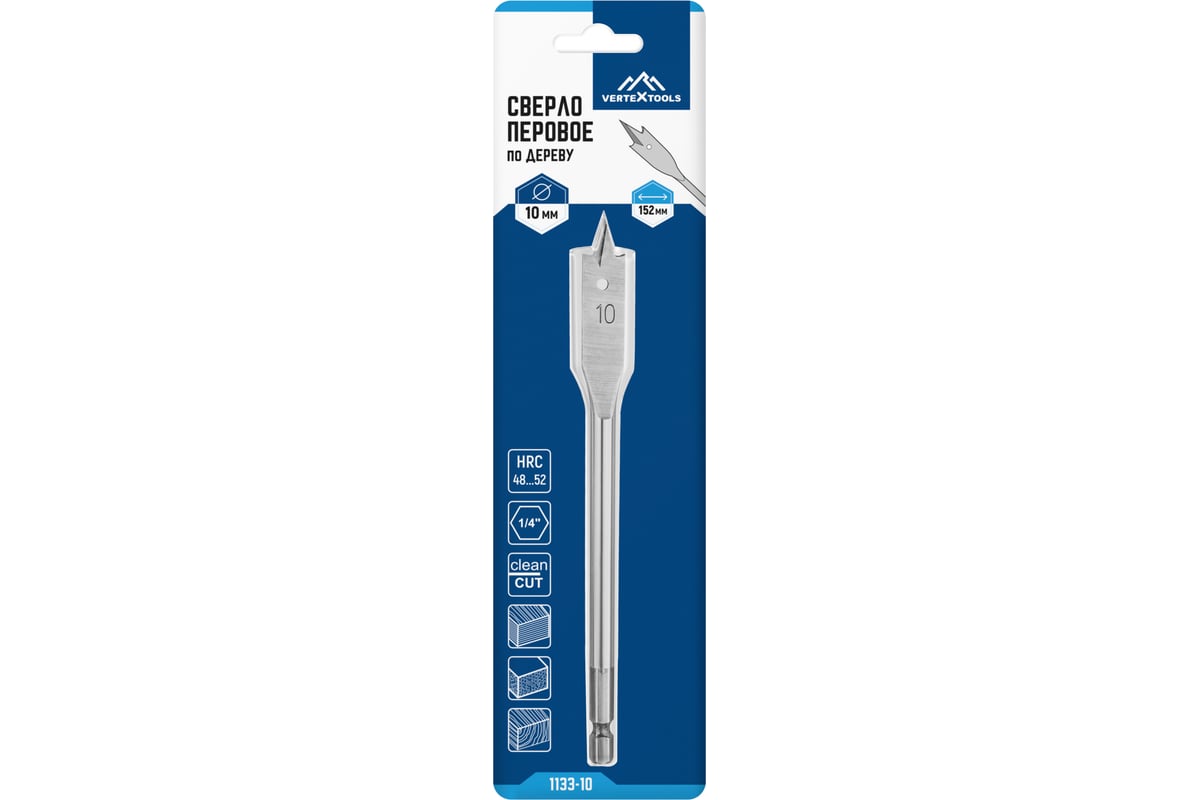 СВЕРЛО перовое 10х152 мм по дереву HEX VERTEXTOOLS