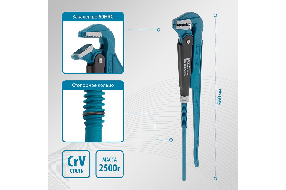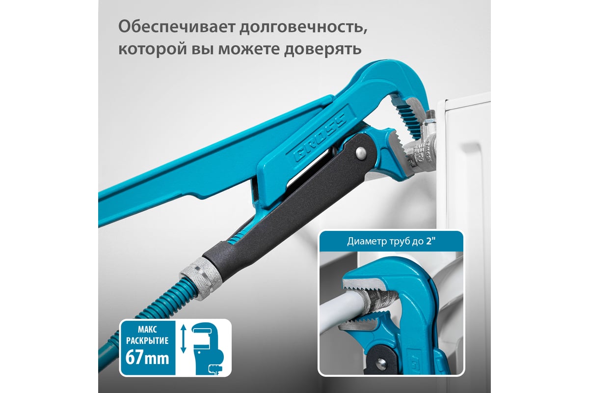 КЛЮЧ трубный №3 2,0" 90° 560 мм рычажный GROSS