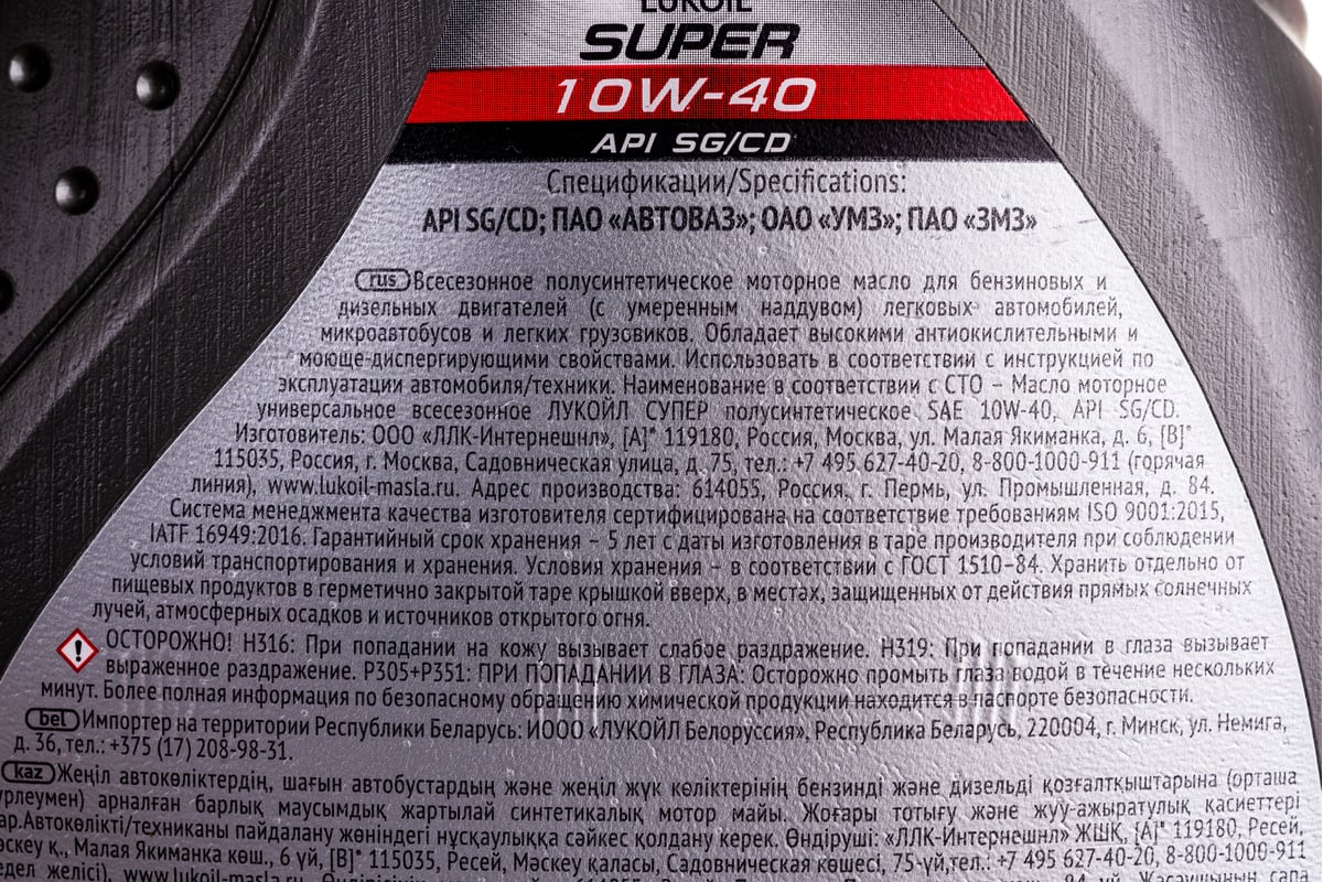 МАСЛО автомобильное 10W40 полусинтетическое API SG/CD Супер ЛУКОЙЛ