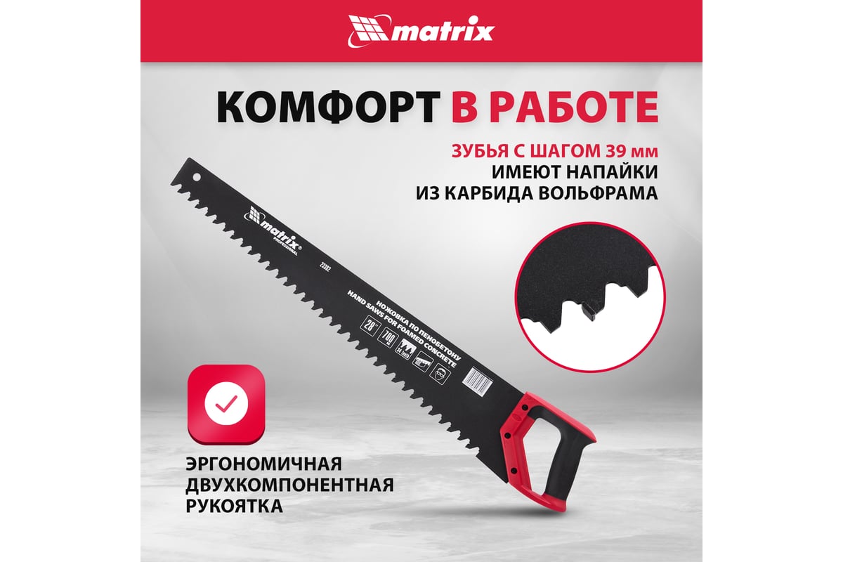 НОЖОВКА по пенобетону 700 мм TPI 0,5 двухкомпонентная рукоятка MATRIX