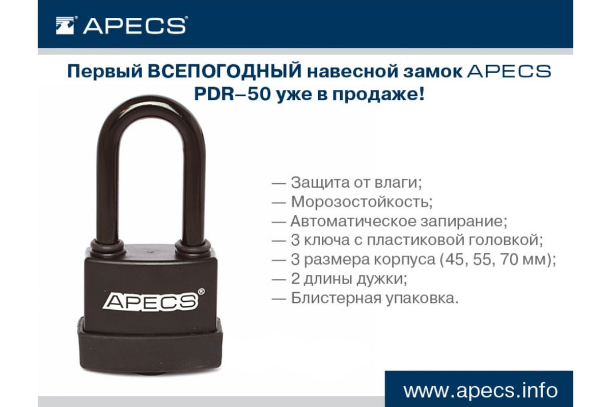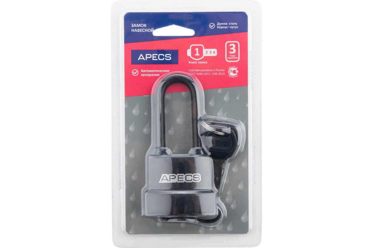 ЗАМОК навесной 47х100,5 мм d7,5 мм амбарный влагозащищенный PDR-50-45-L APECS