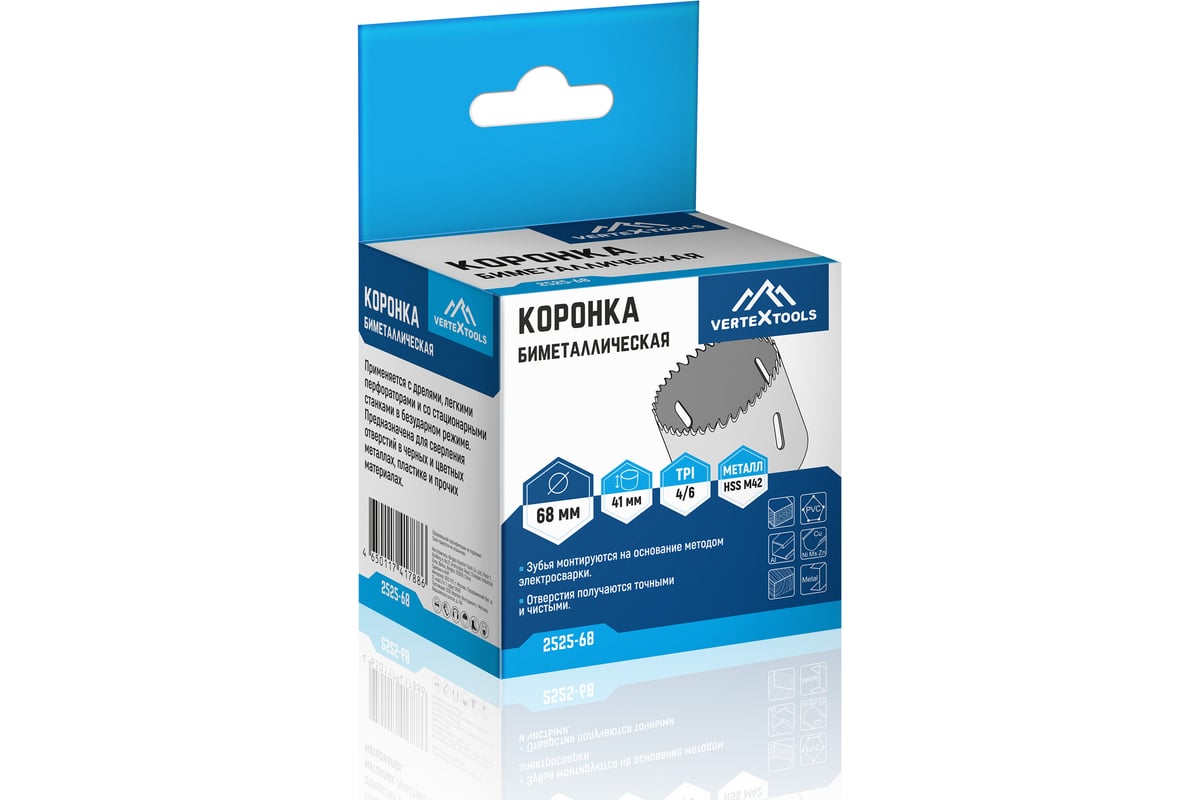 КОРОНКА биметаллическая 68х38 мм универсальная 5/8" VERTEXTOOLS