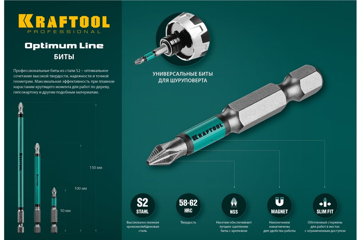 БИТА PZ2 150 мм магнитная E1/4" KRAFTOOL