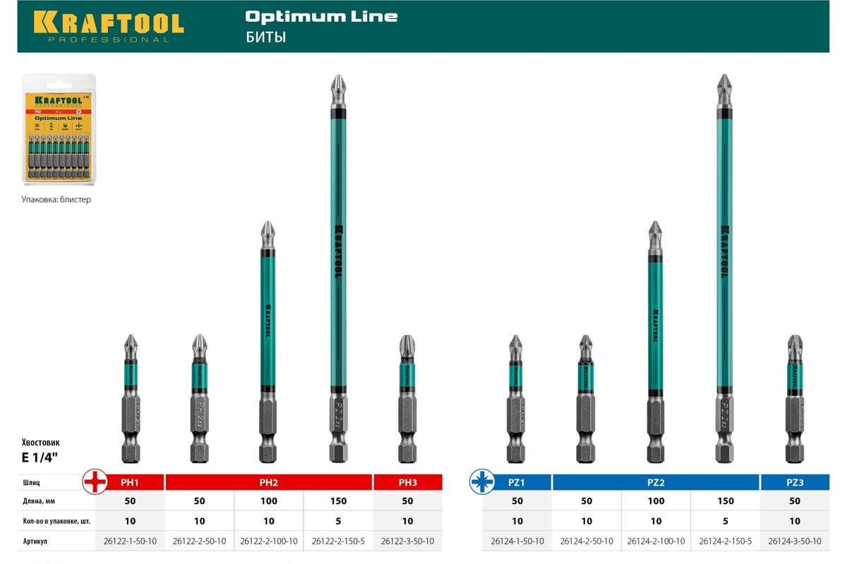 БИТА PZ3 50 мм кованая магнитная с насечкой E1/4" Optimum Line KRAFTOOL