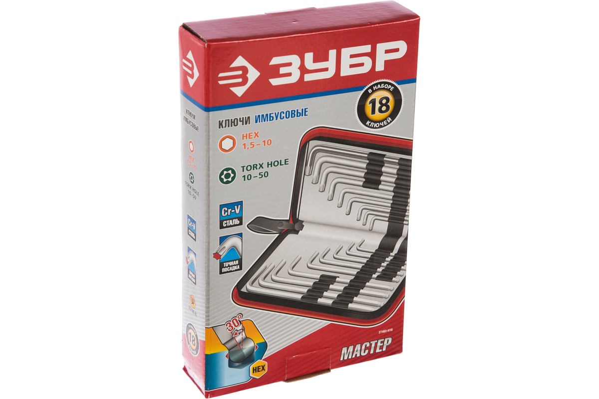 НАБОР ключей имбусовых HEX 1,5-10 мм 18 предм. Эксперт ЗУБР