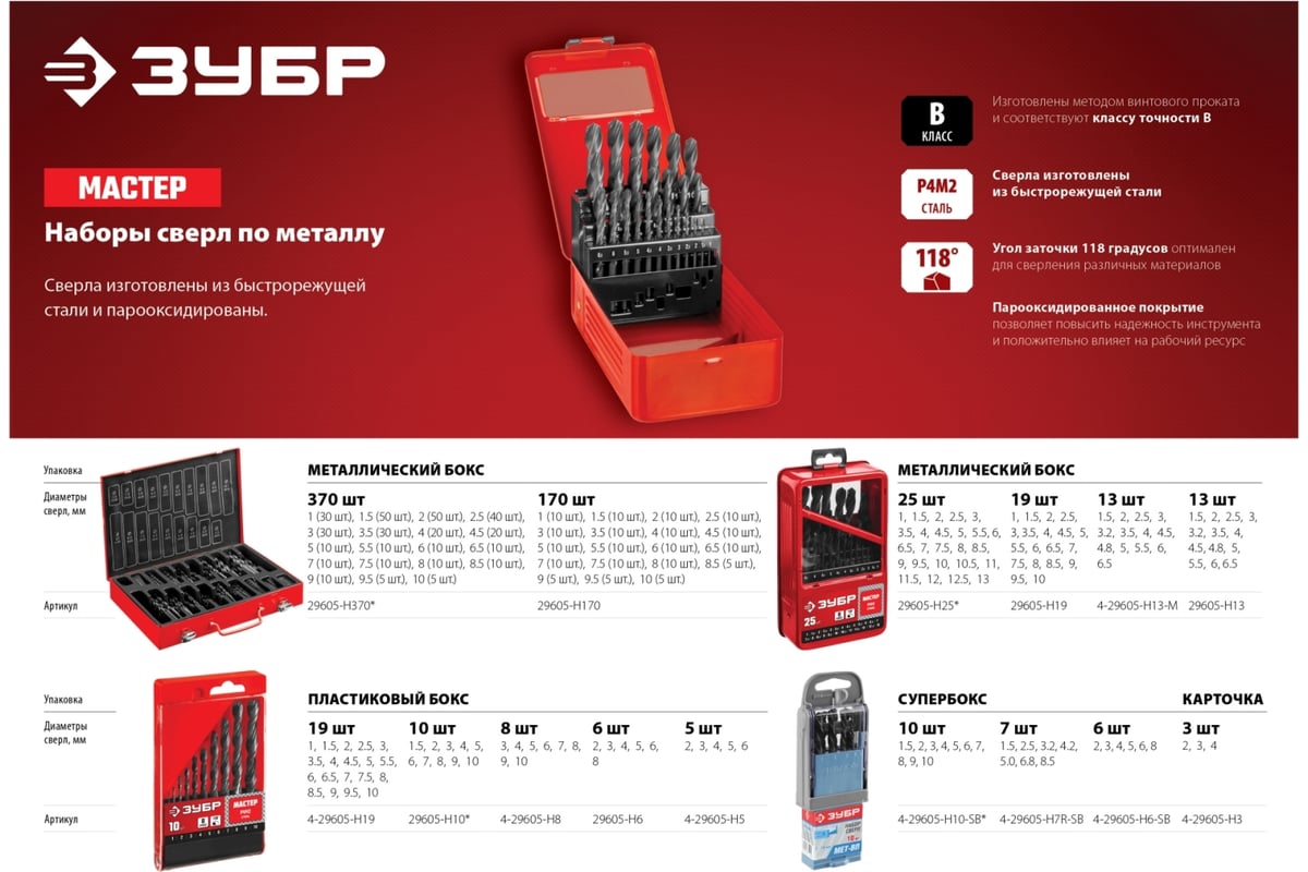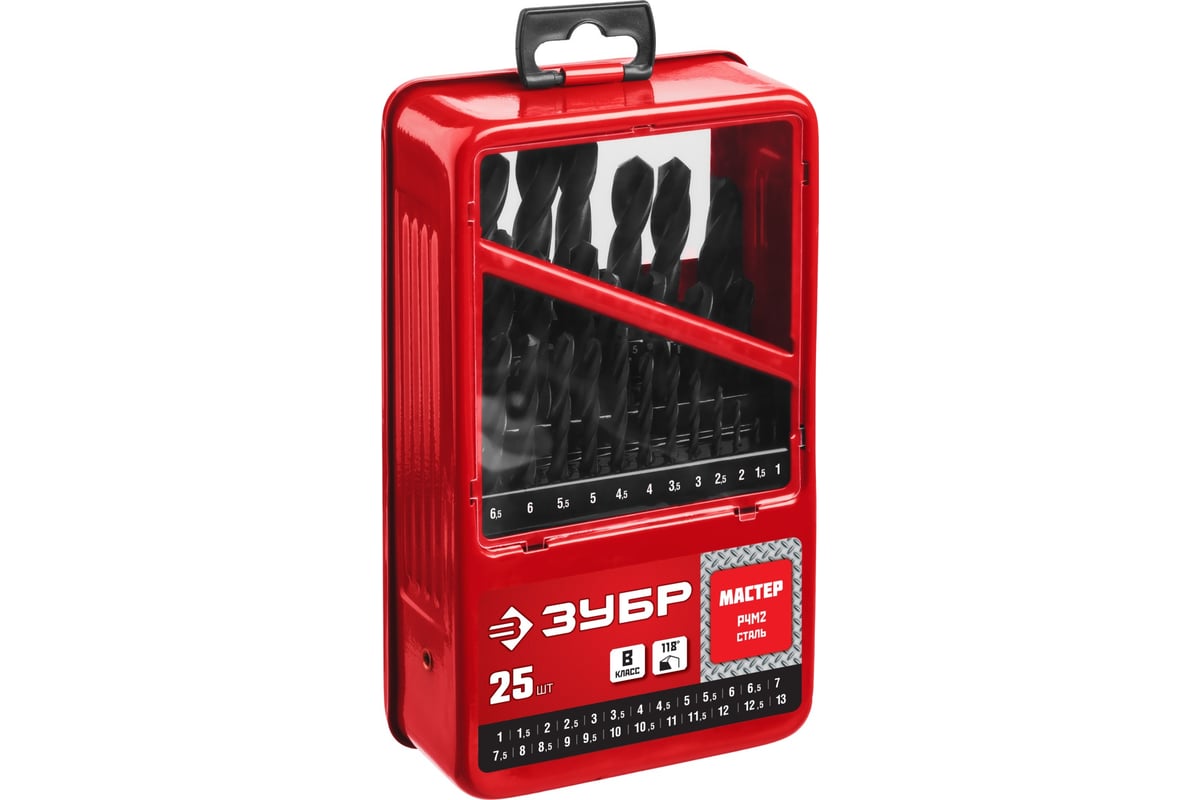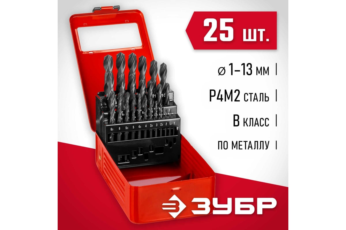 НАБОР сверл спиральных 1,0-13,0 мм по металлу цилиндр 25 шт. ЗУБР