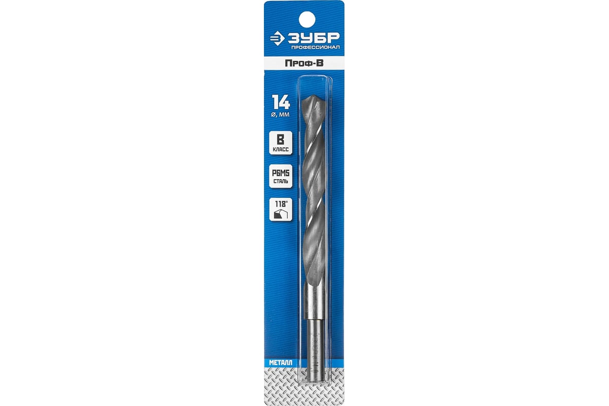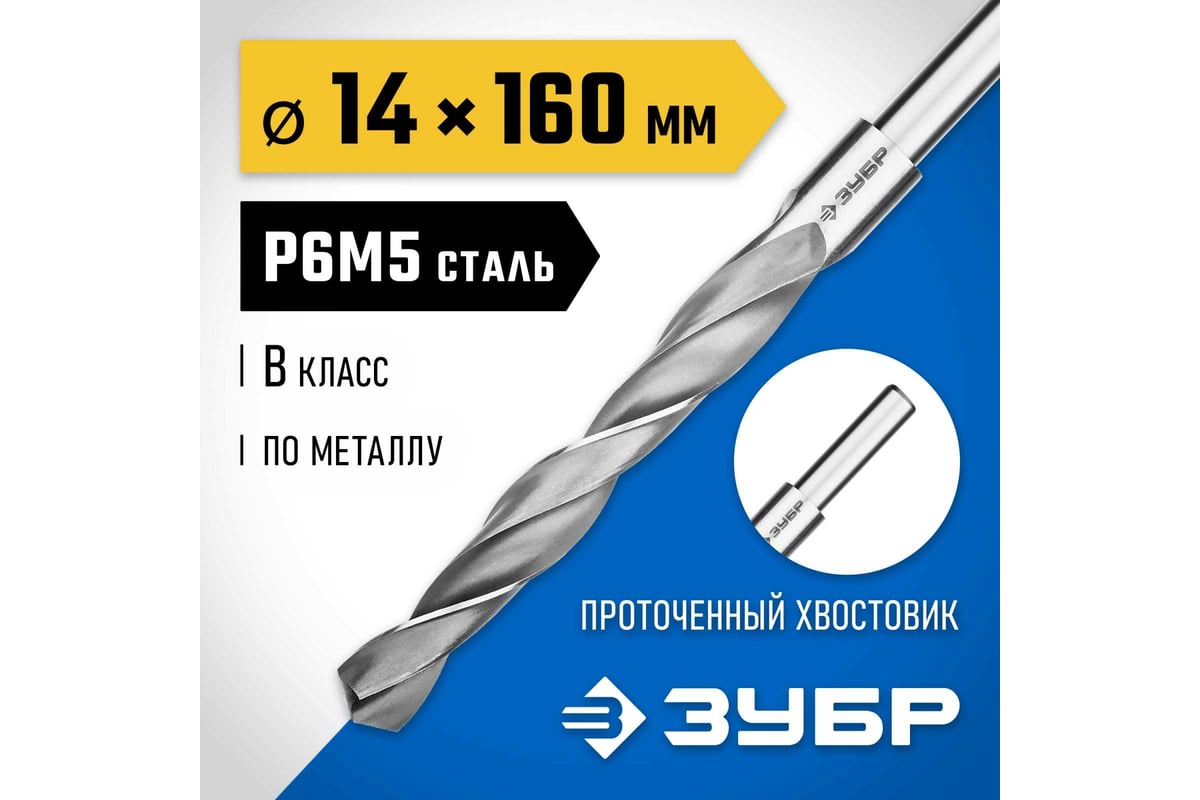 СВЕРЛО спиральное 14,0х108х160 мм по металлу класс В Р6М5 цилиндр Проф-В ЗУБР