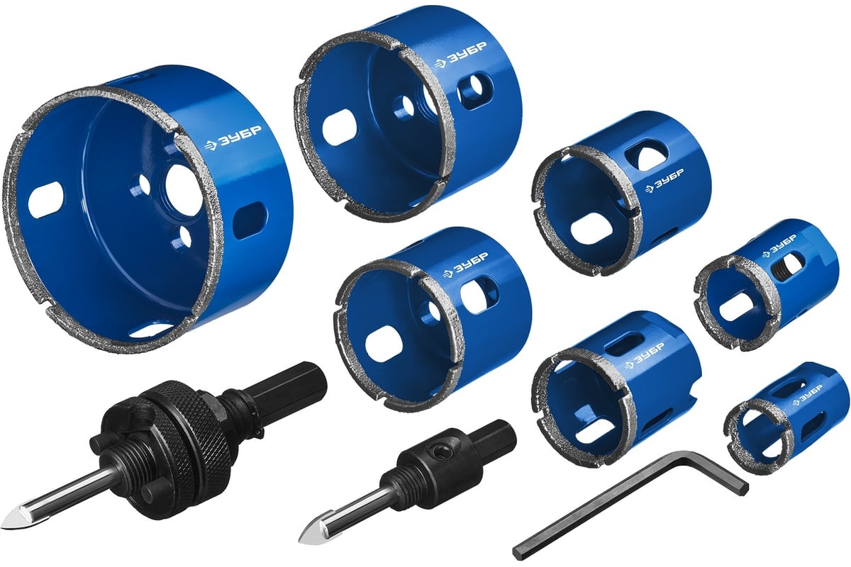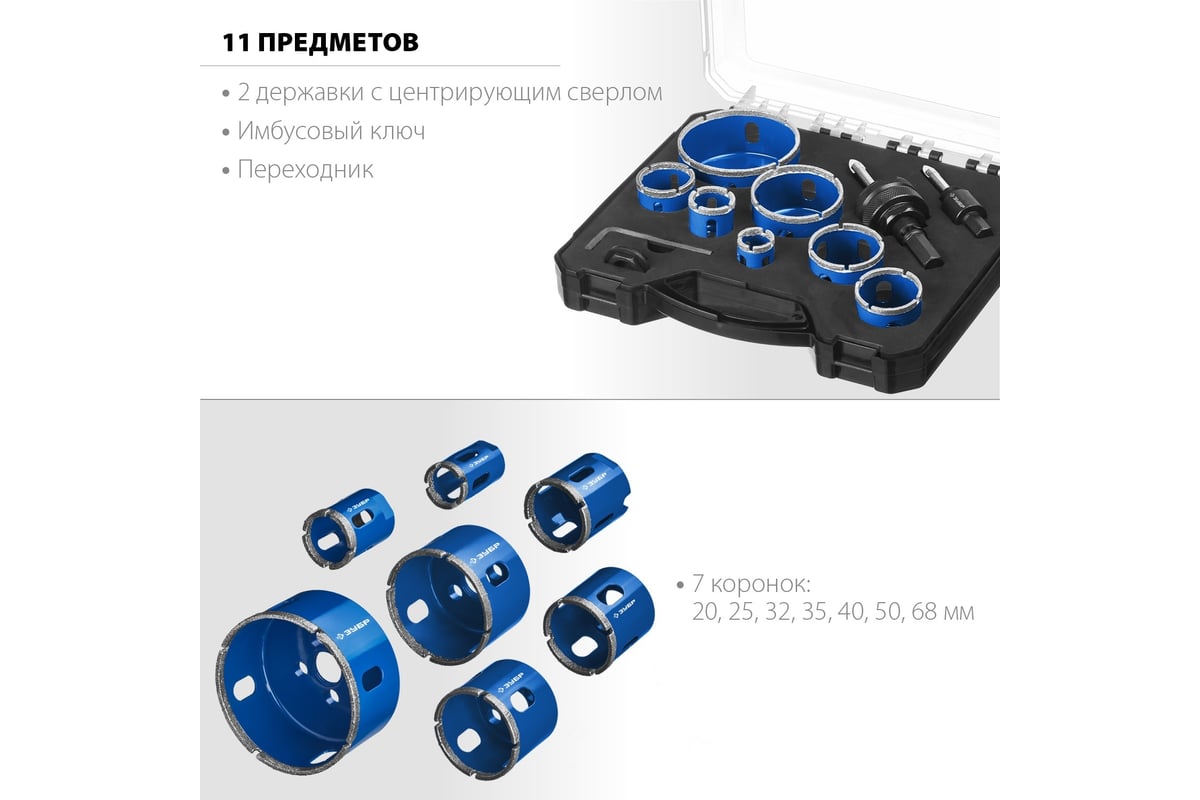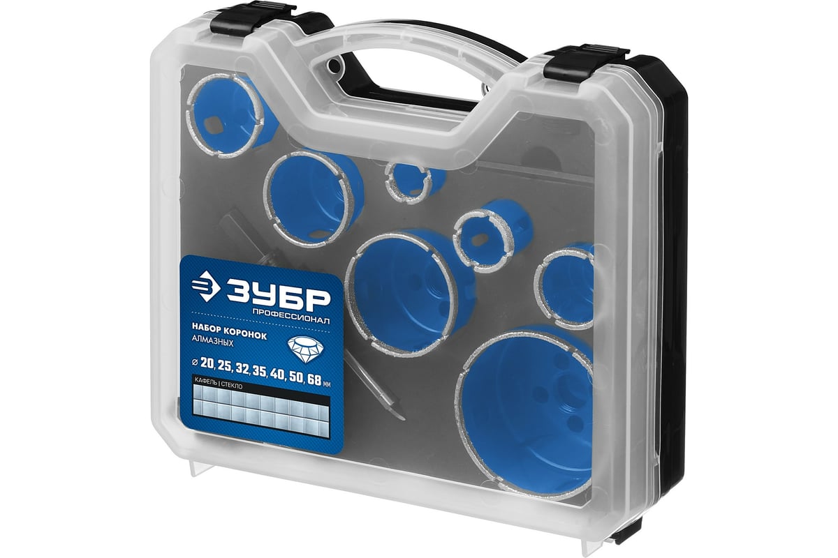 НАБОР коронок алмазных 20-68 мм по керамике и стеклу Р60-100 7 шт Профессионал ЗУБР