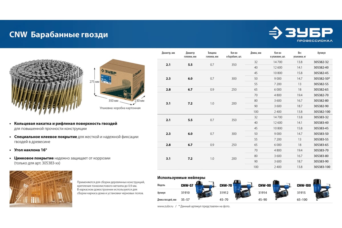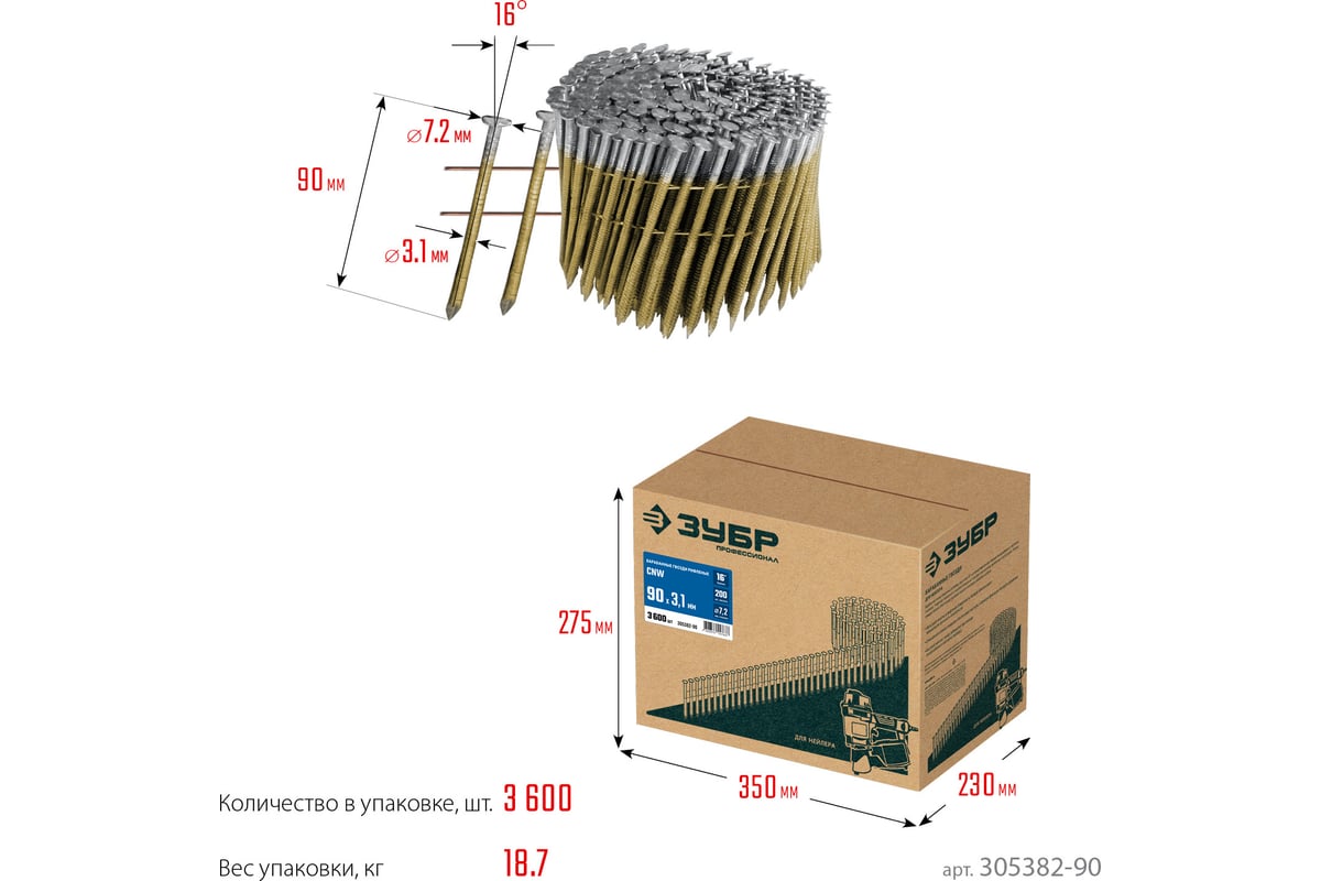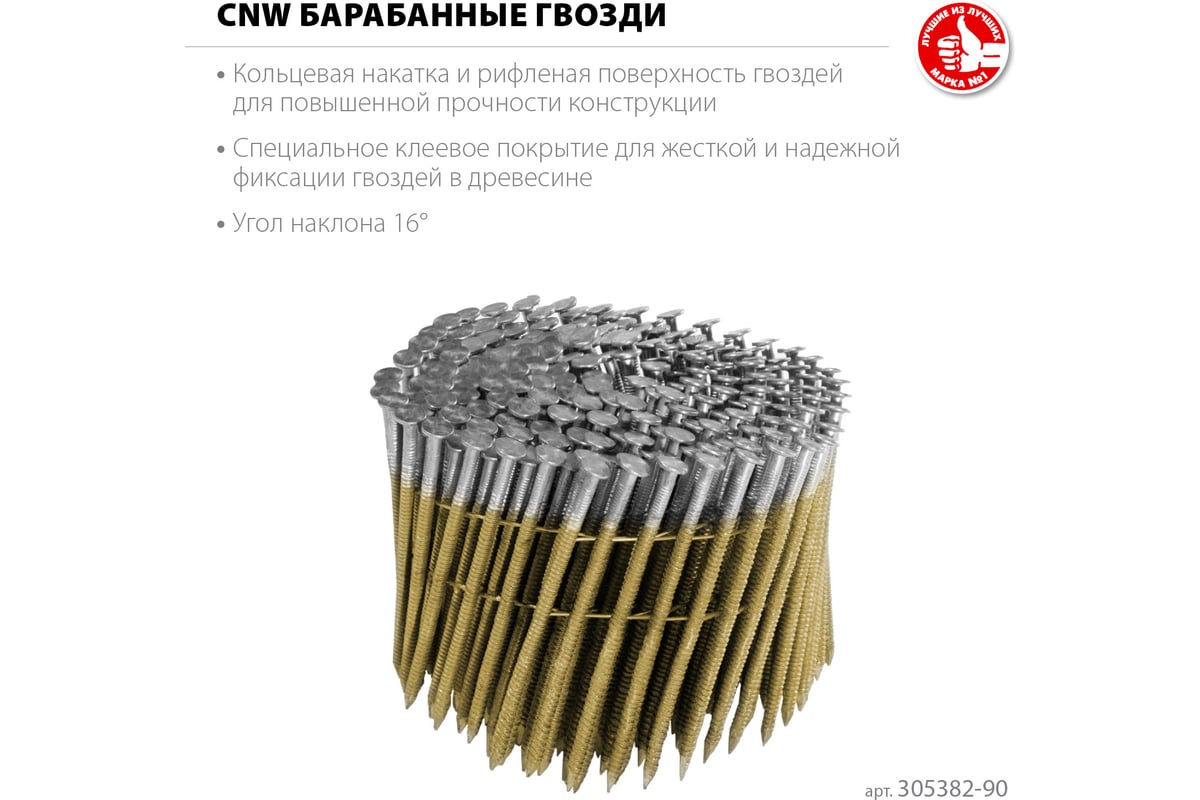 ГВОЗДЬ барабанный 3,1х90 мм для нейлера пневматического 3600 шт CNW ЗУБР