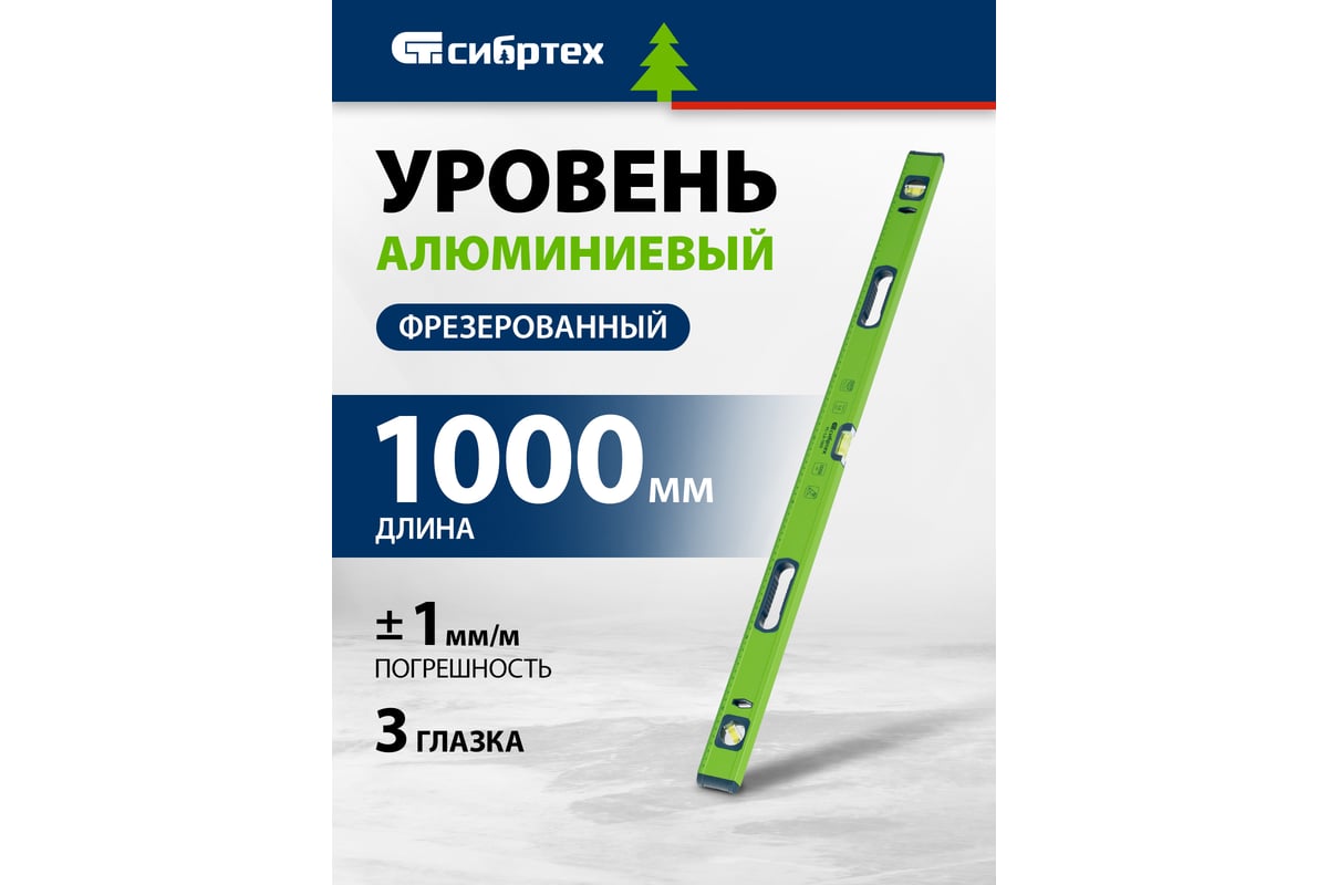 УРОВЕНЬ строительный 1000 мм 3 глазка фрезерованный алюминий УС-1,0 СИБРТЕХ