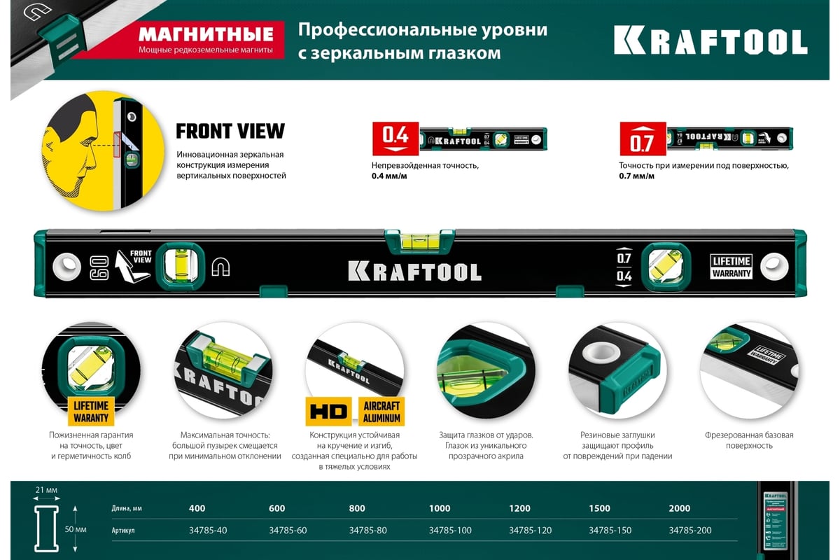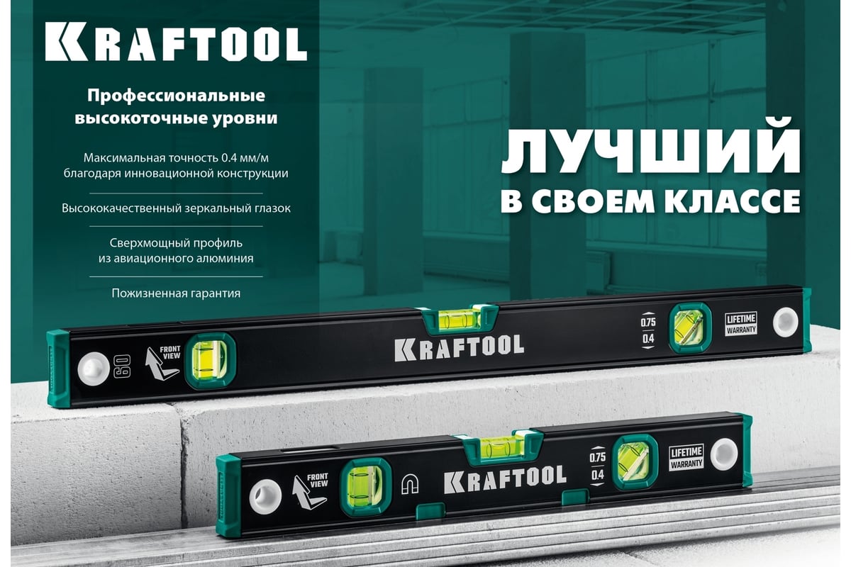 УРОВЕНЬ строительный 400 мм 3 глазка магнитный с зеркальным глазком KRAFTOOL