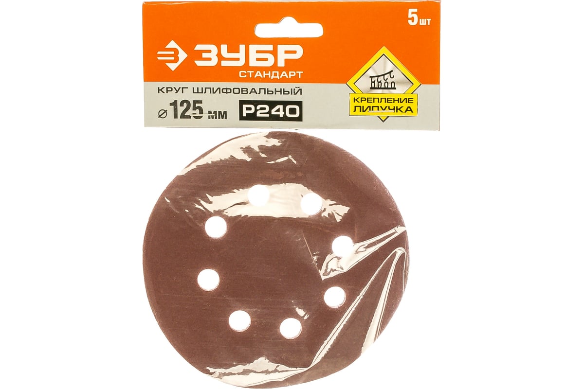 КРУГ шлифовальный 125 мм Р240 8 отверстий на липучке Стандарт ЗУБР