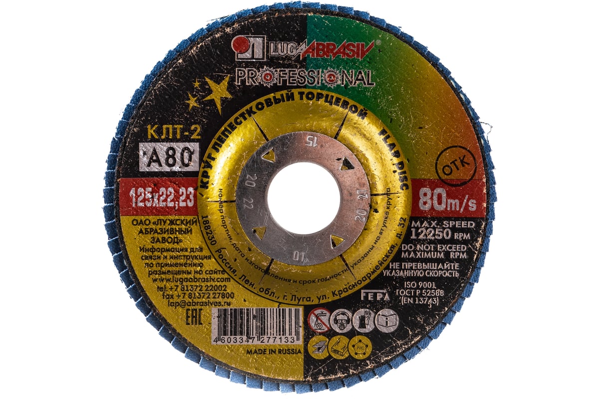 ДИСК лепестковый КЛТ1 125х22,2 мм Р80 универсальный ЛУГА