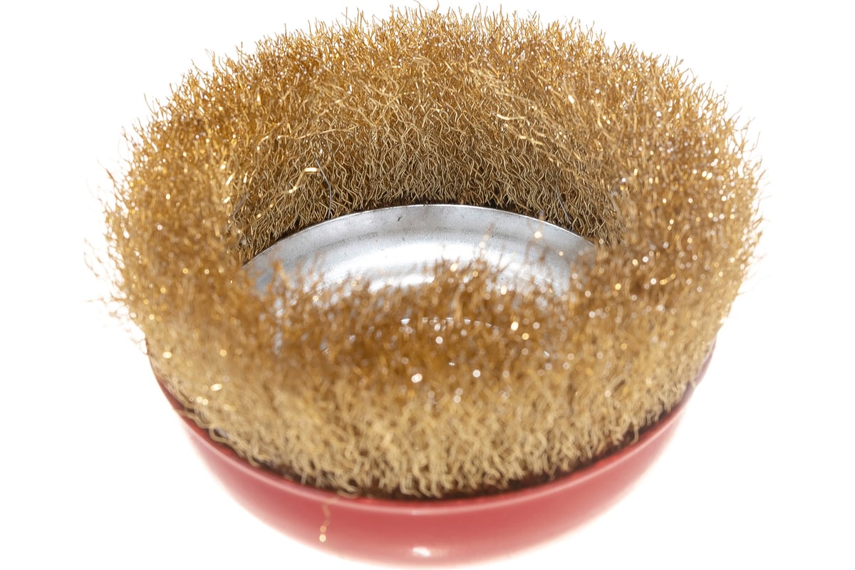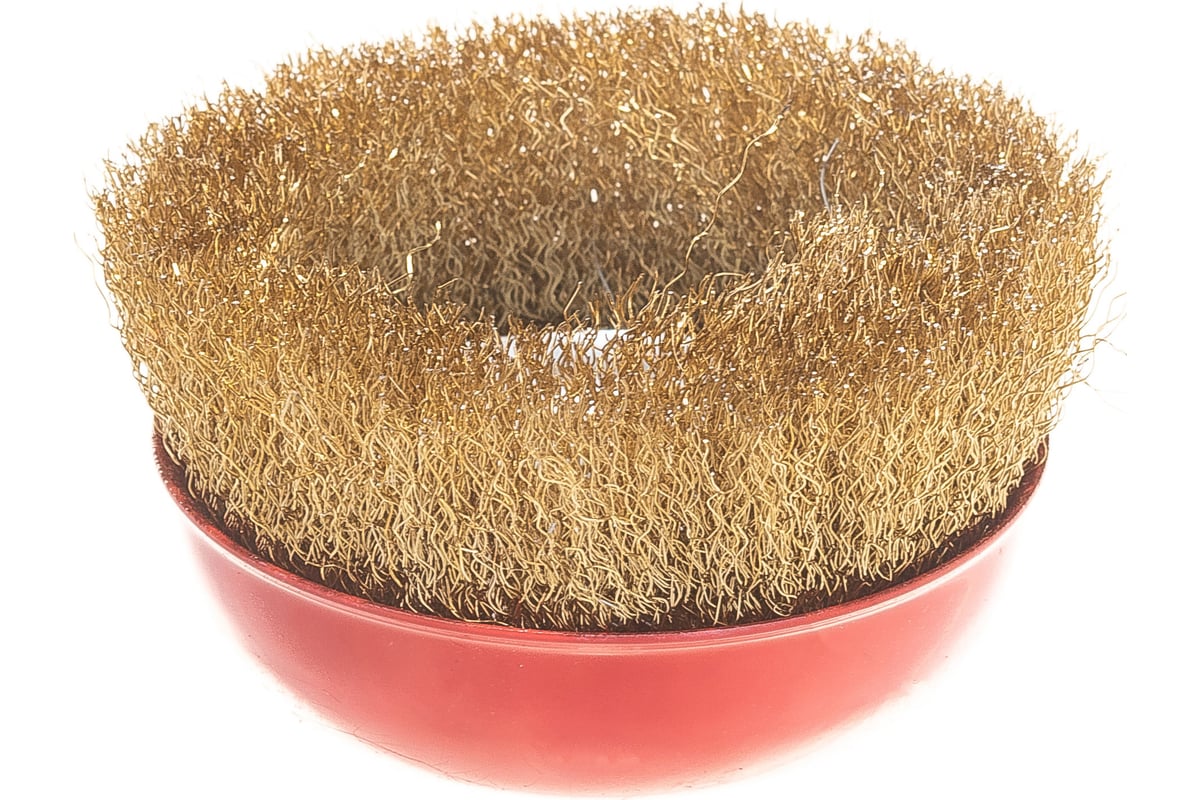 КОРЩЕТКА чашечная 125 мм волнистая латунированная М14 для УШМ КУРС