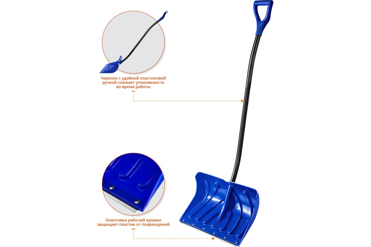 ЛОПАТА снеговая 380х365 мм 1300 мм стальная планка пластик/дерево РЕМОКОЛОР цв. черный