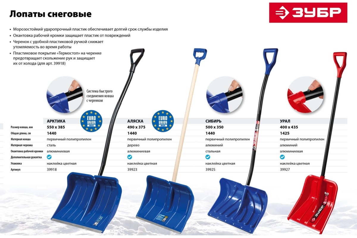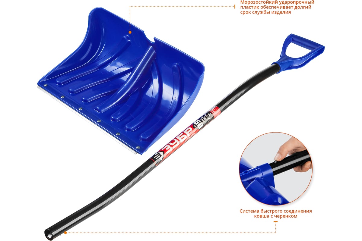 ЛОПАТА снеговая 350х500 мм 1440 мм полипропилен/алюминий Сибирь ЗУБР