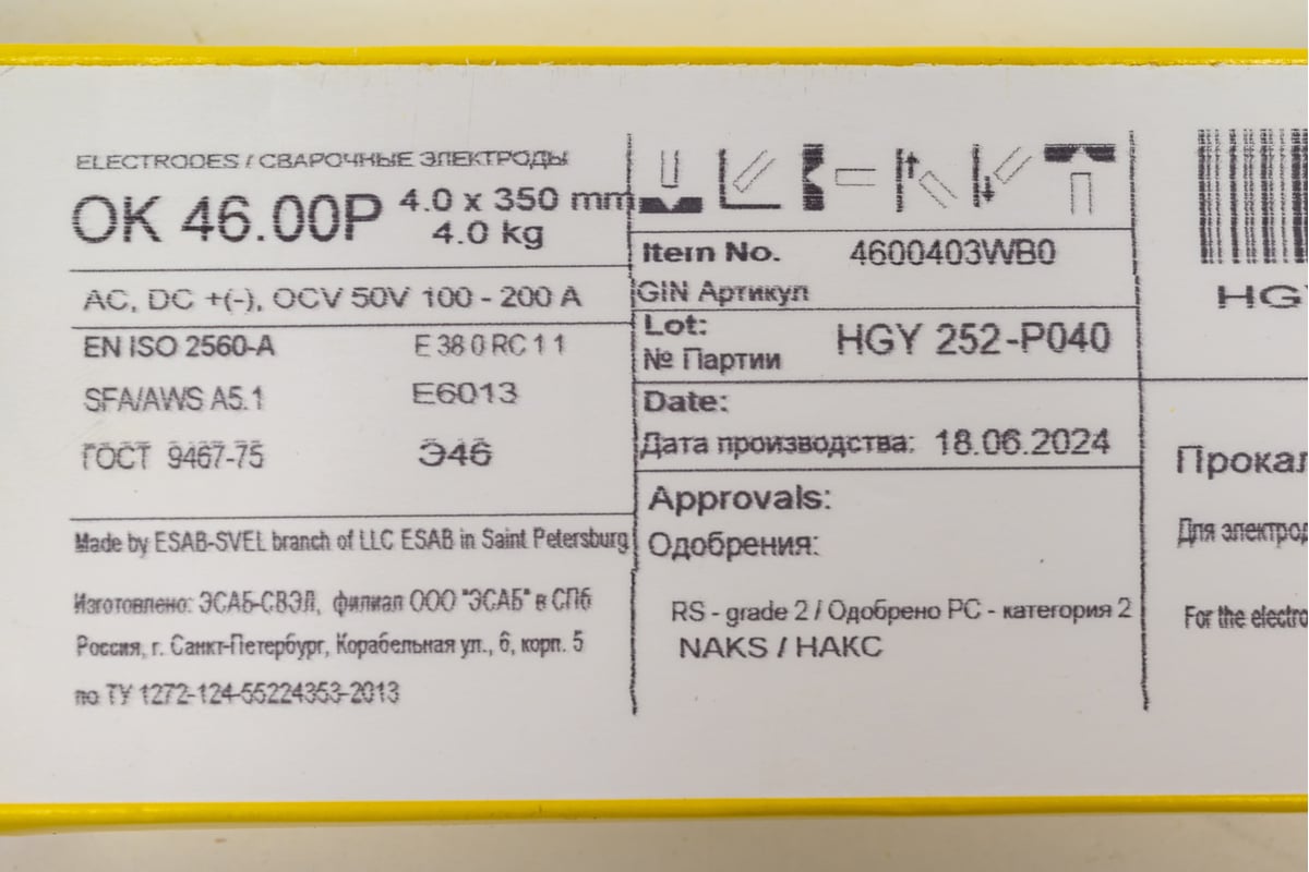 ЭЛЕКТРОДЫ сварочные ОК 46.00 4,0 мм ESAB