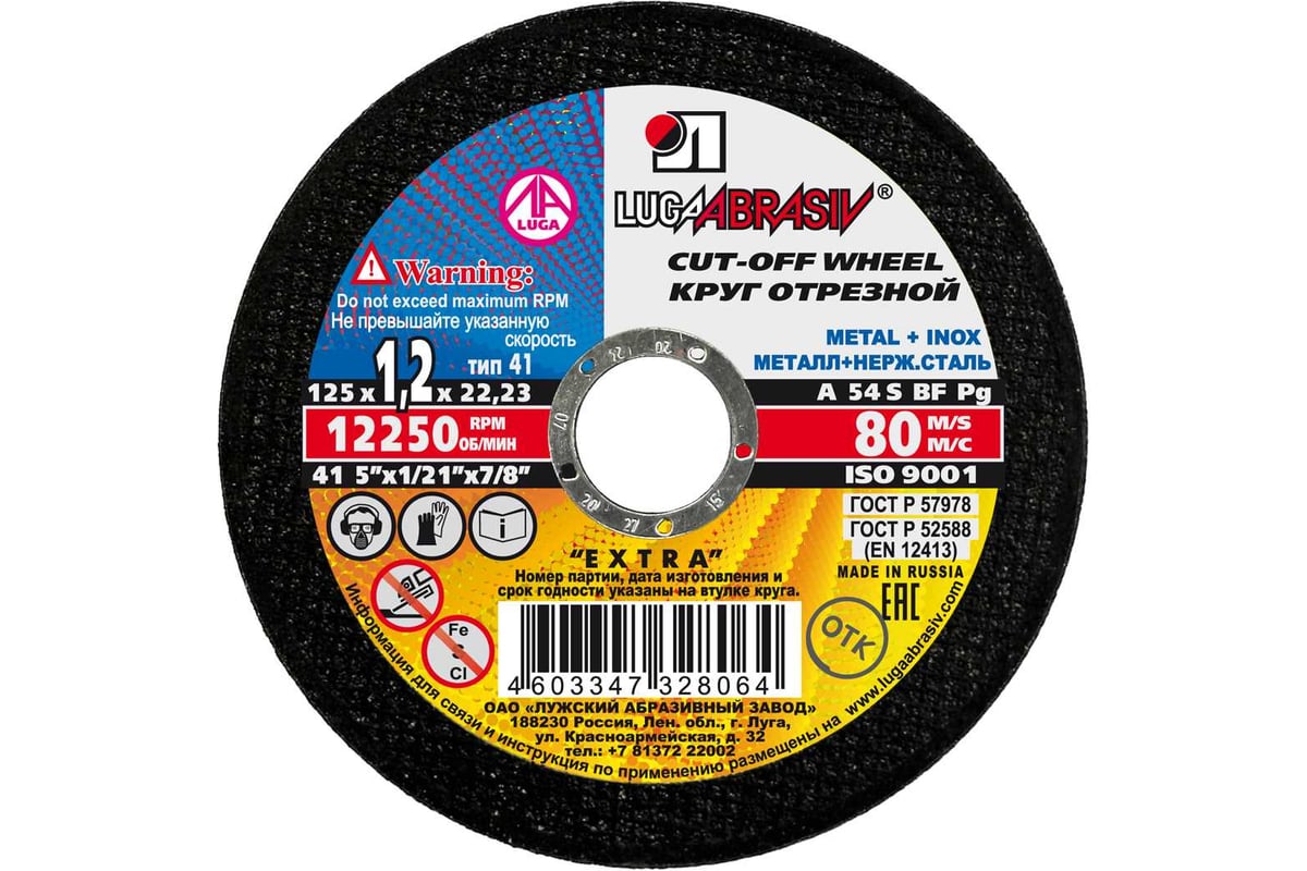 ДИСК отрезной 125х1,2х22,2 мм по металлу ЛУГА