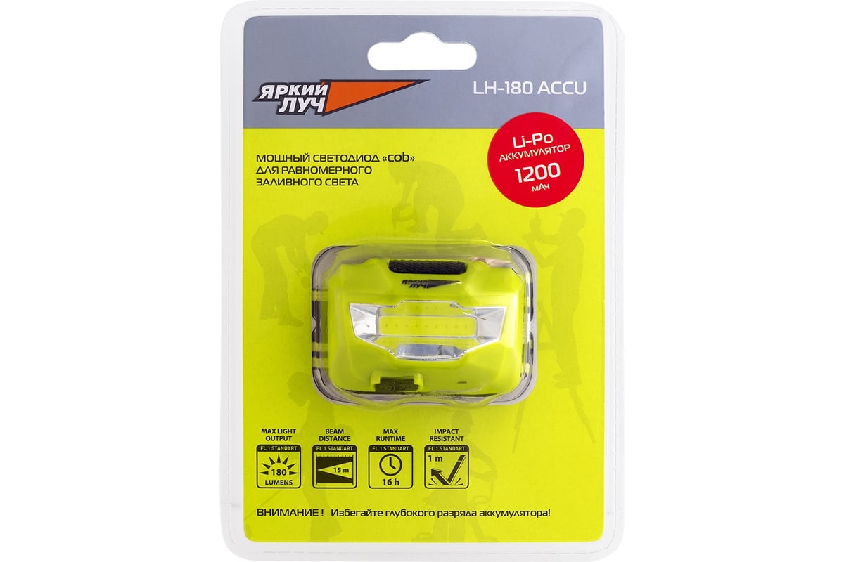 ФОНАРЬ LED 3 Вт 1,2 Ач 180 Лм налобный аккумуляторный 2 режима COB ACCU LH-180 ЯРКИЙ ЛУЧ