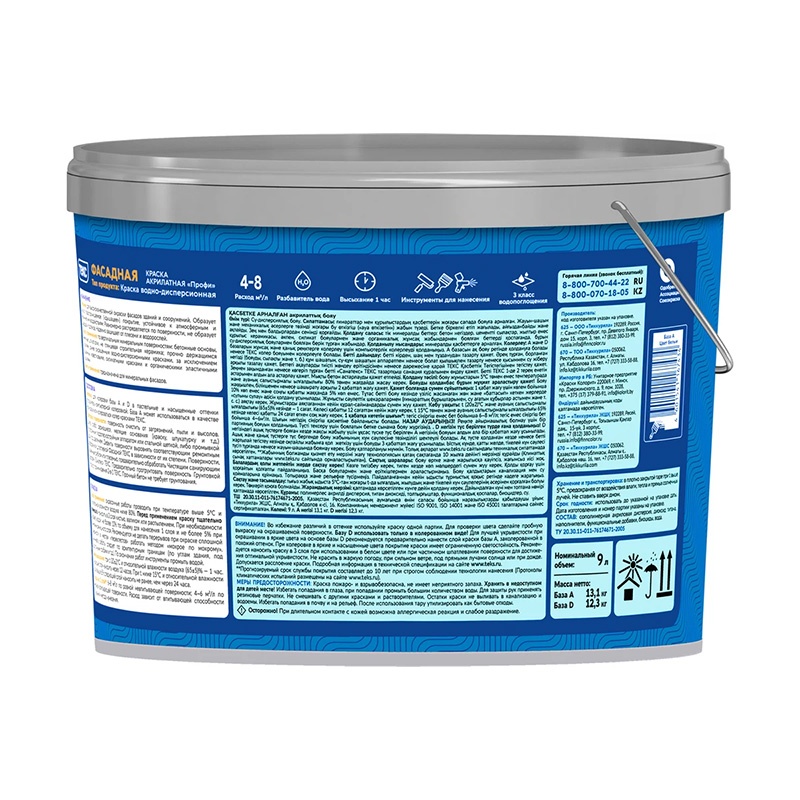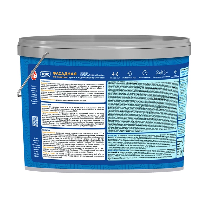 КРАСКА акрилатная фасадная матовая 9 л база D Профи NEW ТЕКС RAL 7010