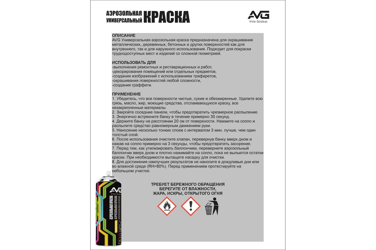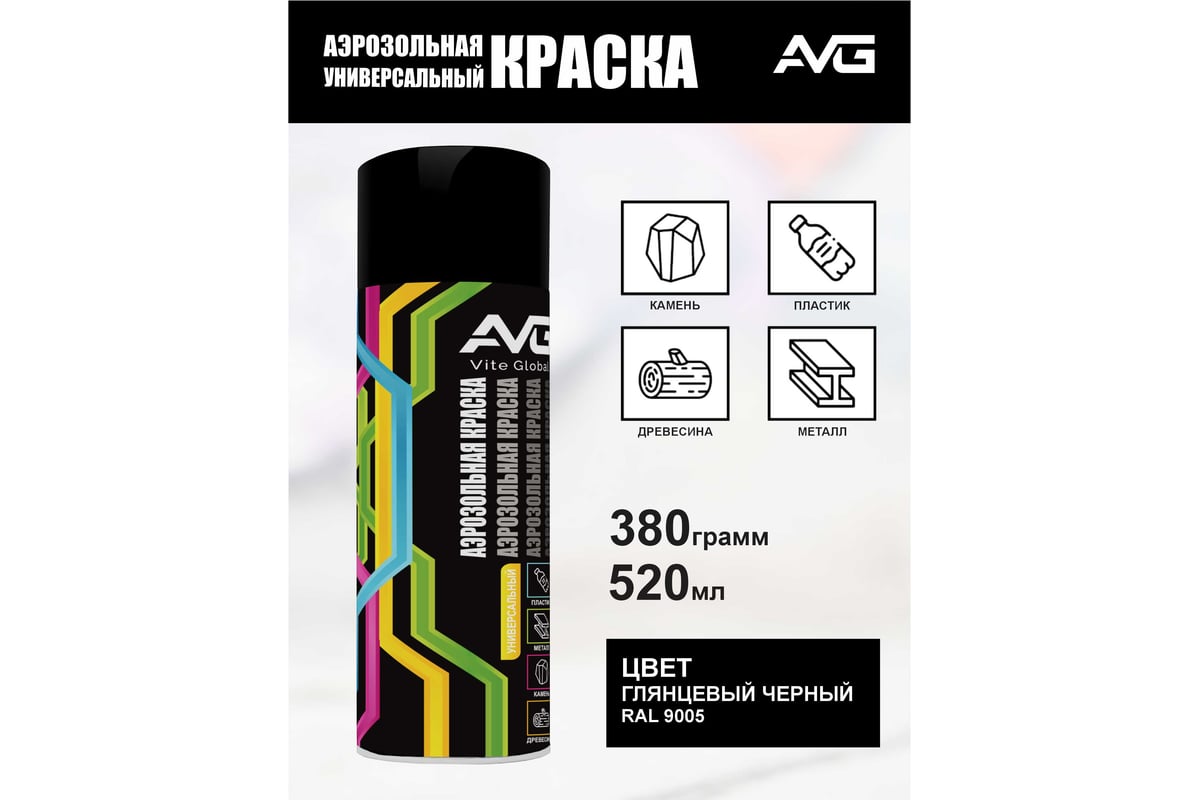 ЭМАЛЬ аэрозольная акриловая глянцевая 520 мл AVG RAL 9005 цв. черный