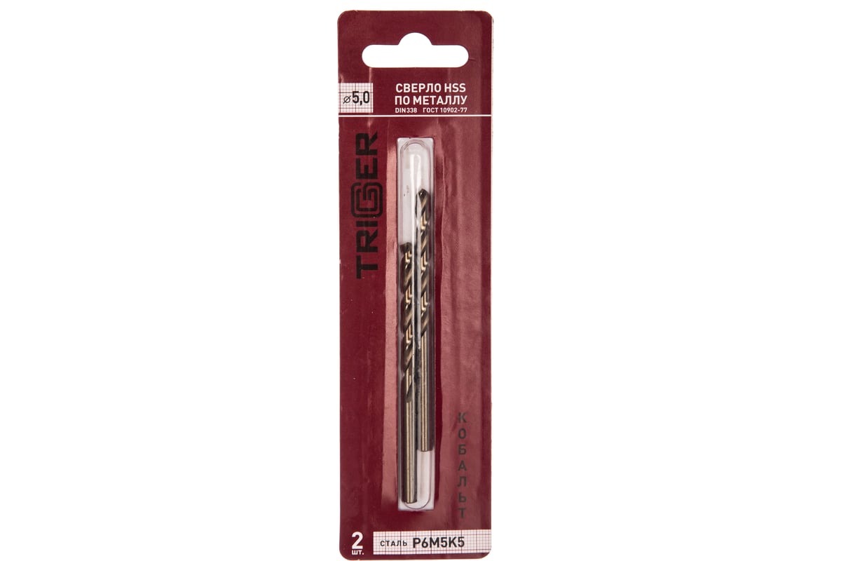 СВЕРЛО спиральное 5,0х52х86 мм по металлу Р6М5К5 цилиндр 2 шт Кобальт ТРИГГЕР