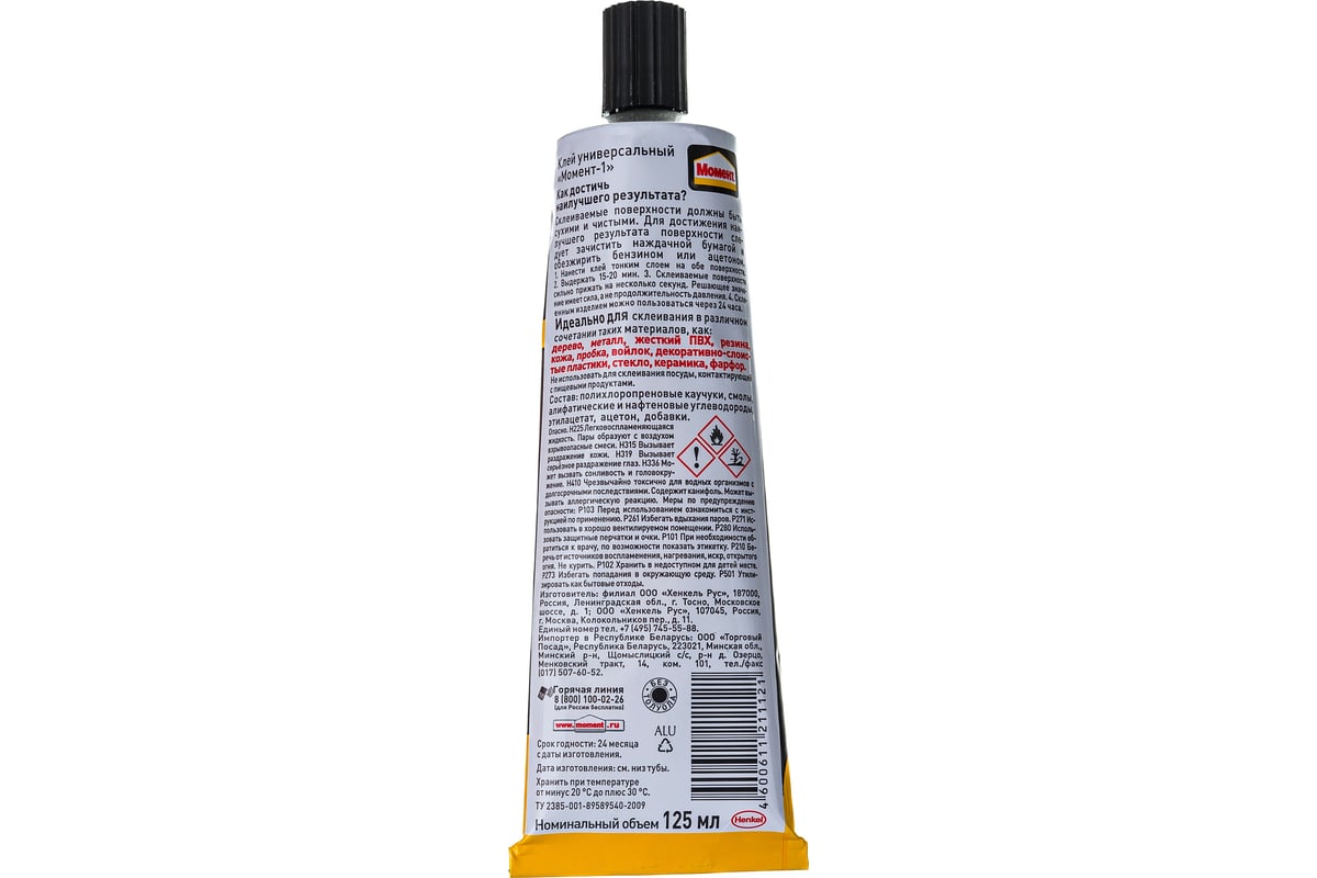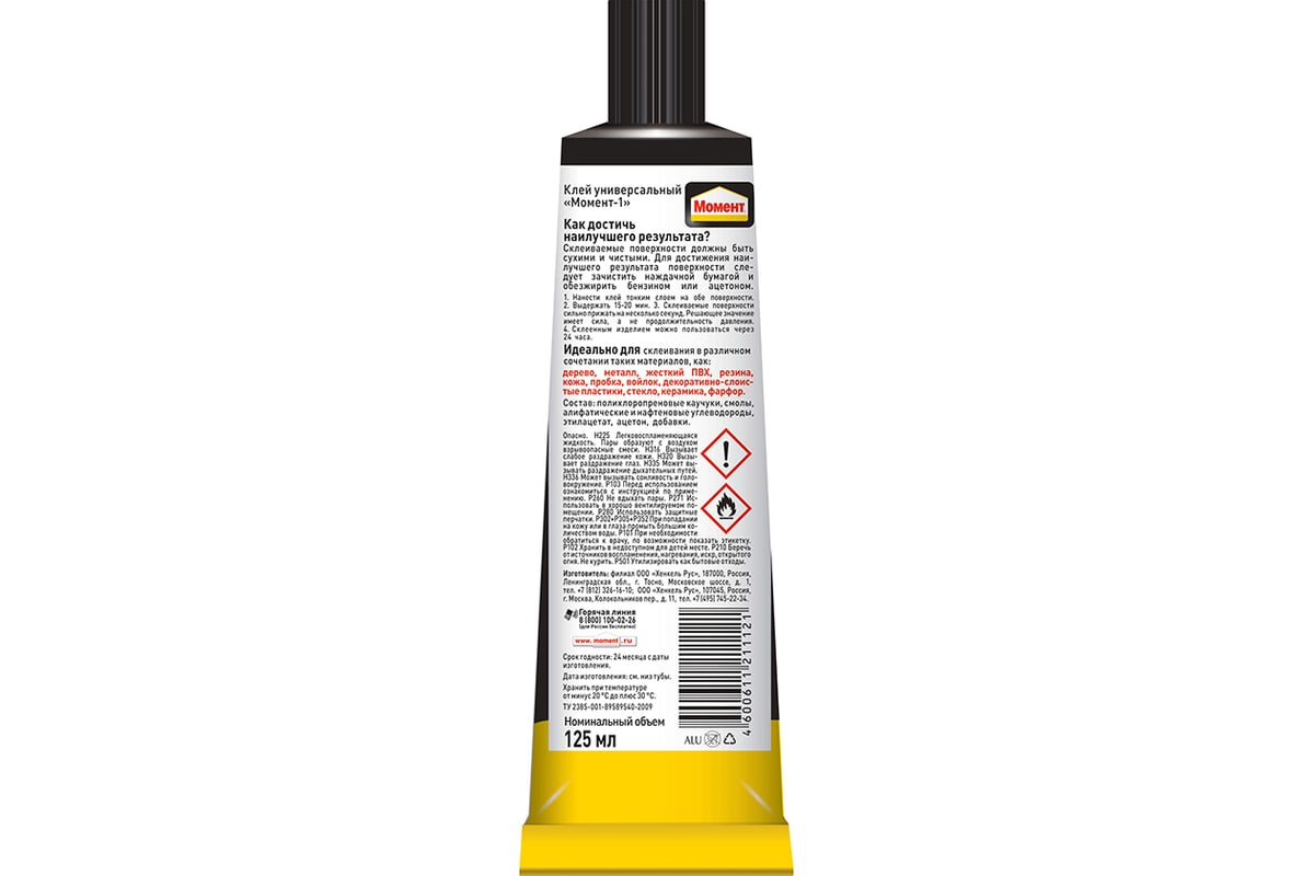 КЛЕЙ каучуковый универсальный туба 125 мл Классик 1 МОМЕНТ цв. желтый