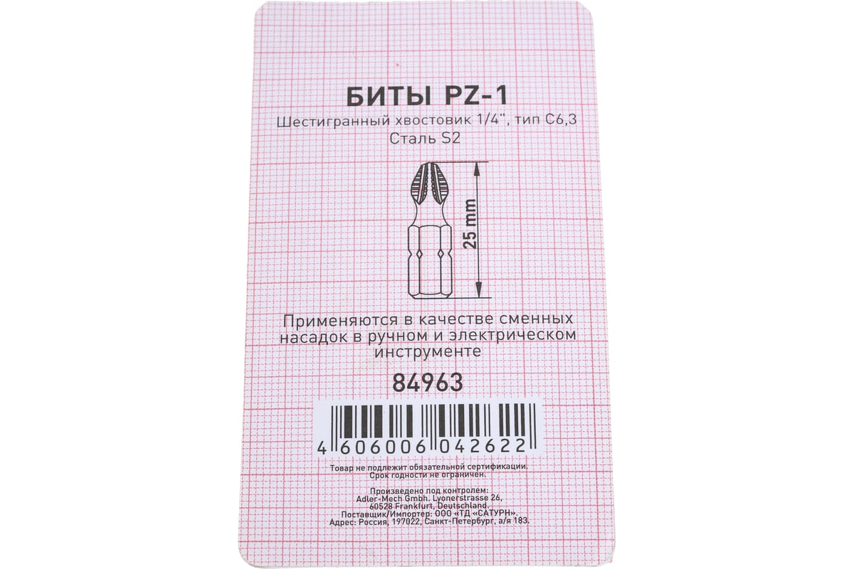БИТА PZ1 25 мм Е1/4" BIBER