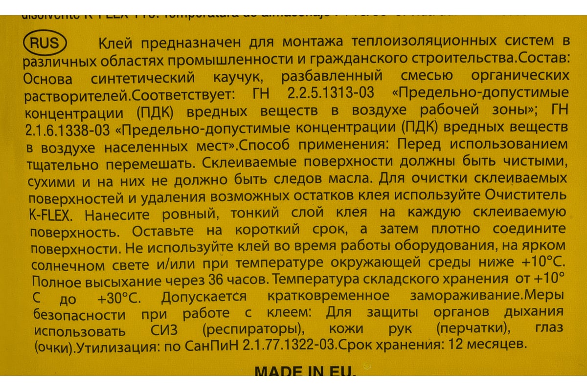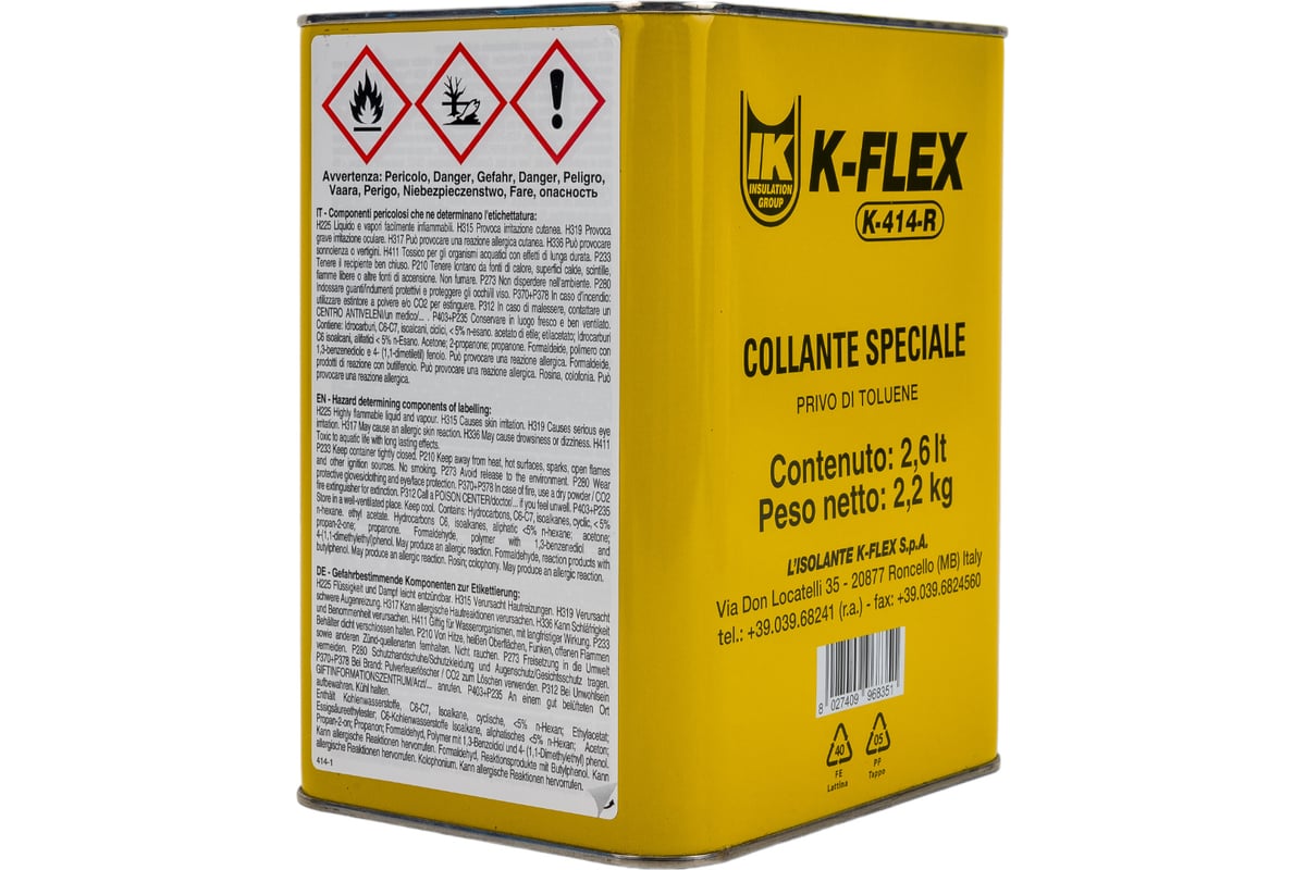 КЛЕЙ каучуковый для теплоизоляции 2,6 л К 414 K-FLEX цв. желтый