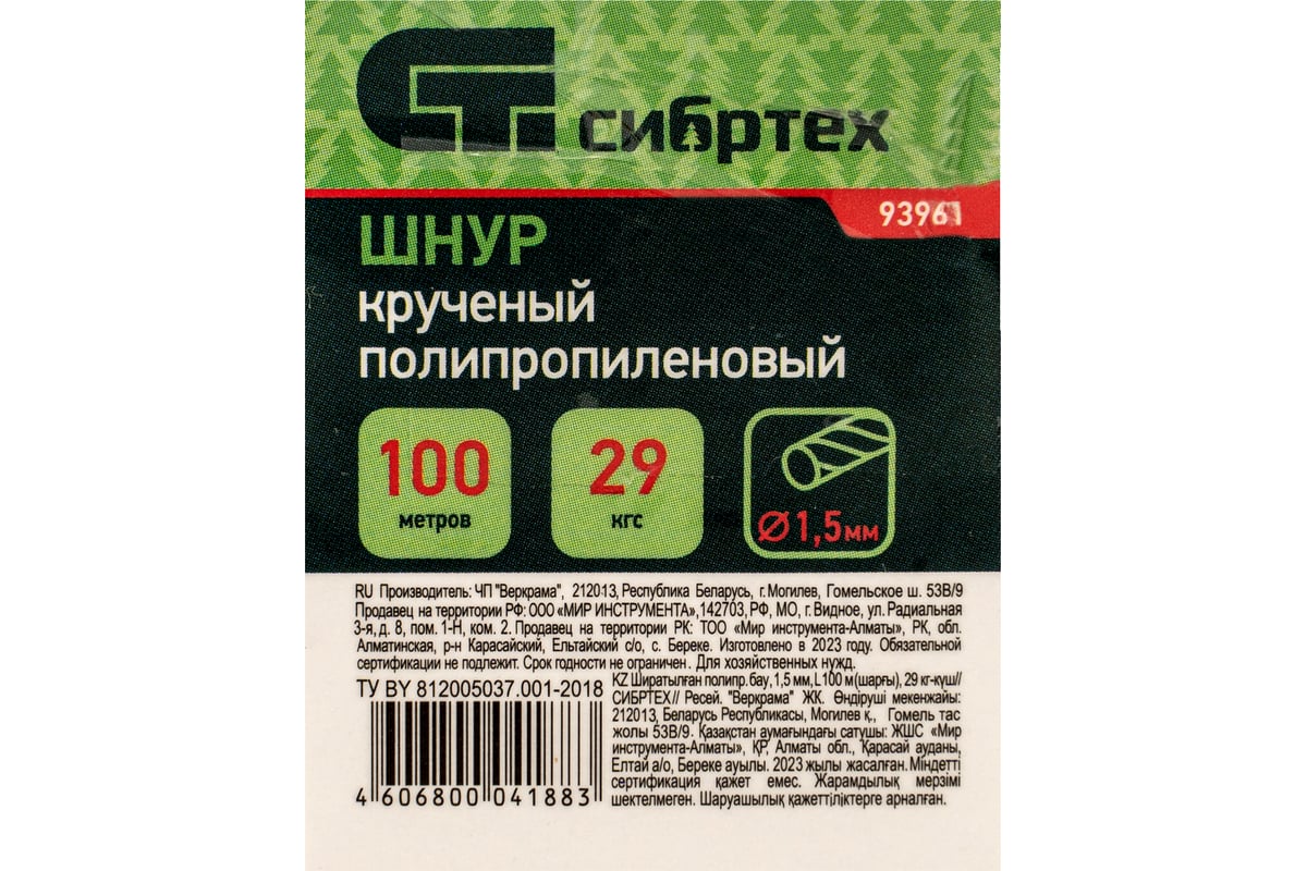 НИТЬ крученая 1,5 мм полипропилен 100 м СИБРТЕХ