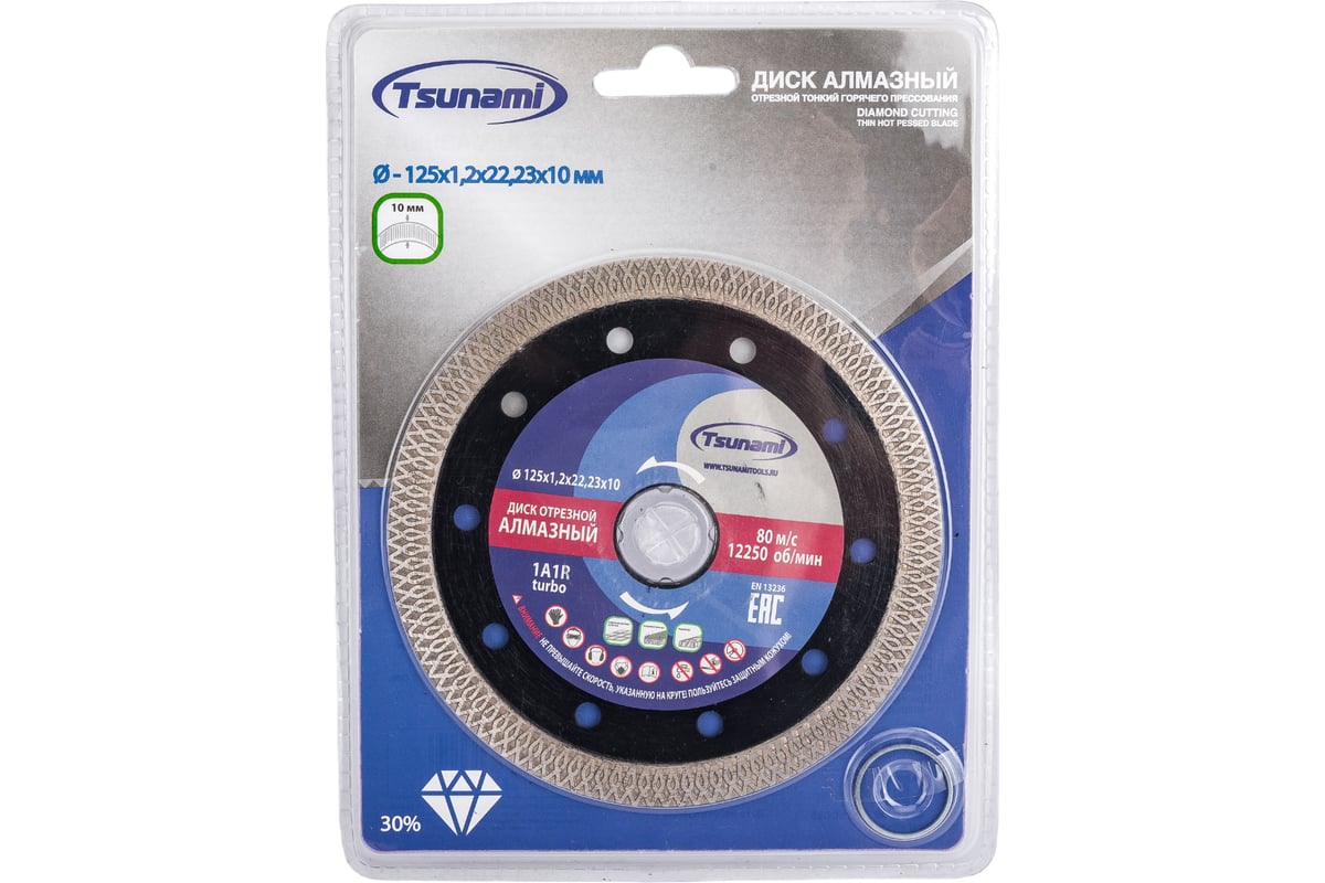 ДИСК алмазный 125х1,2х22,2 мм по керамограниту сплошной турбо TSUNAMI
