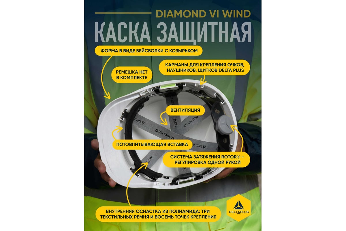 КАСКА защитная с вентиляцией и козырьком АБС-пластик DIAMOND VI WIND DELTA PLUS цв. белый