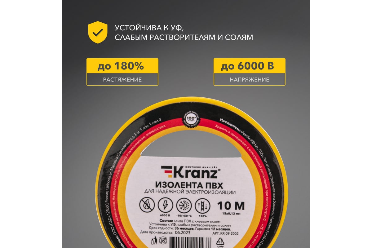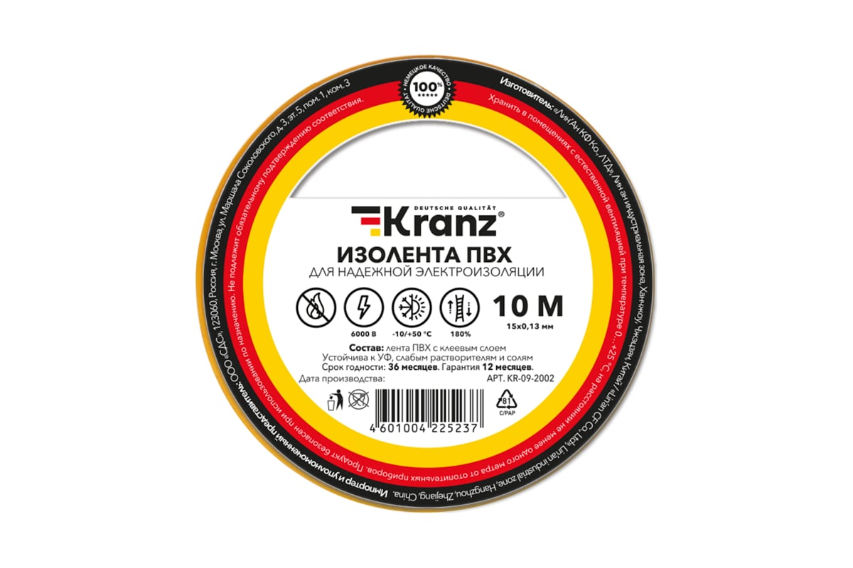 ИЗОЛЕНТА ПВХ 15 мм 10 м KRANZ цв. желтый