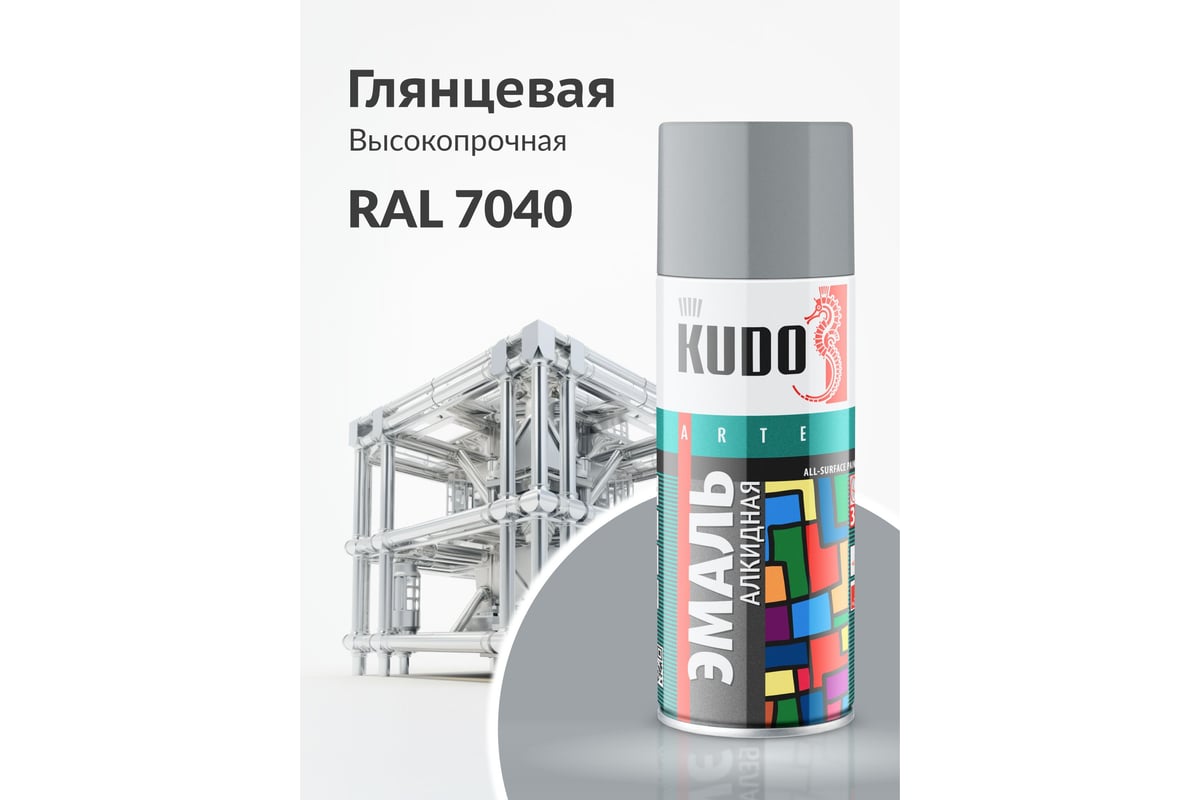 ЭМАЛЬ аэрозольная алкидная глянцевая 520 мл Arte KUDO RAL 7040 цв. серый