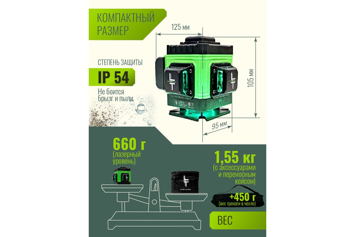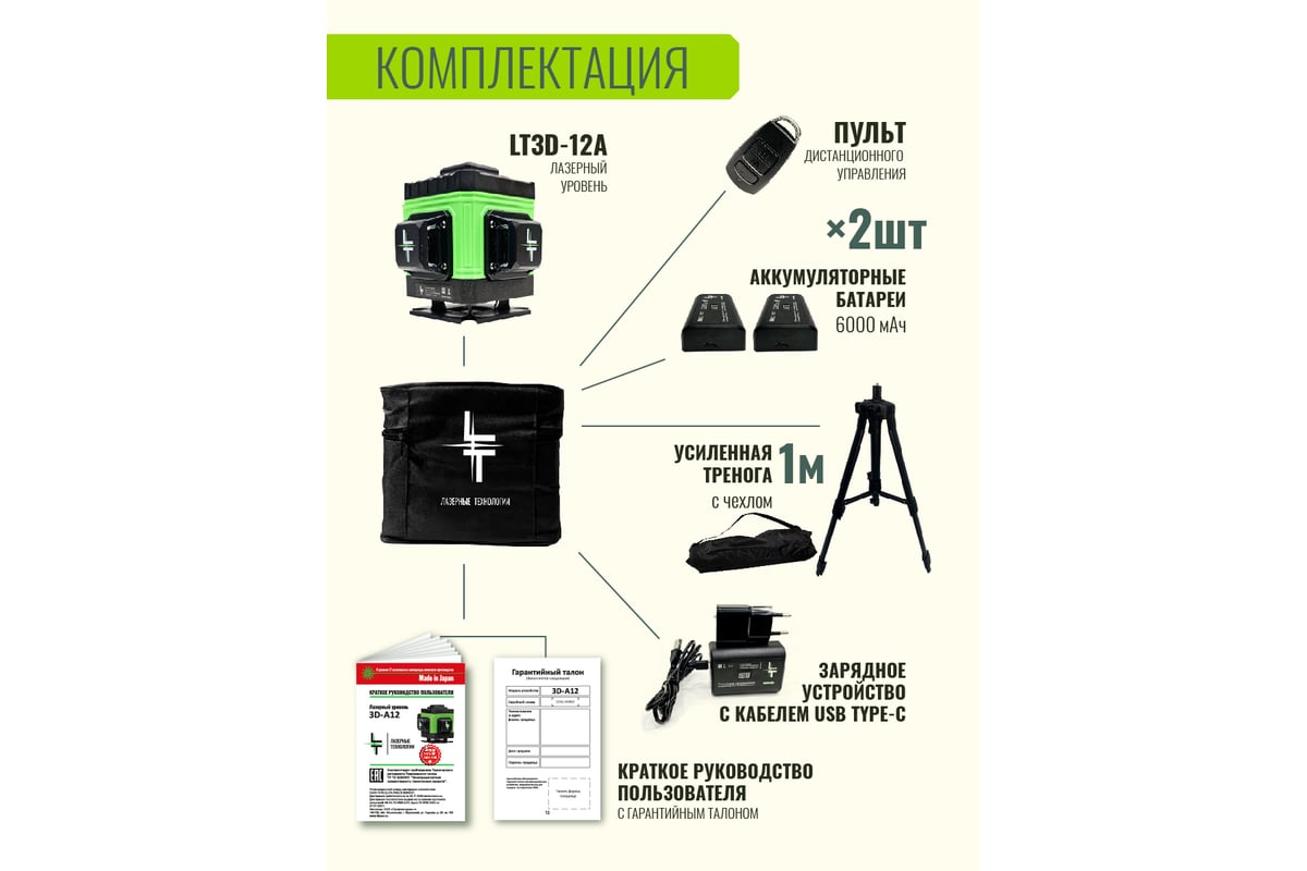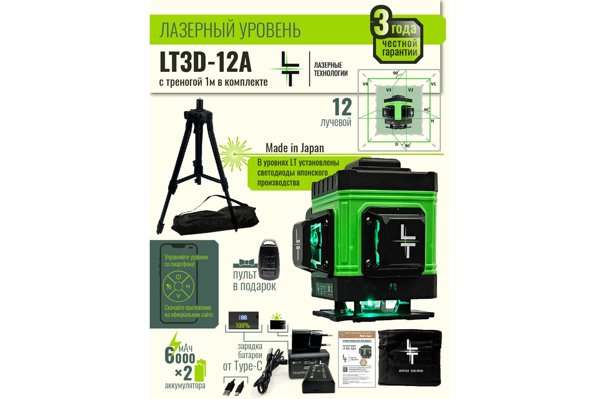 УРОВЕНЬ лазерный 12 лучей со штативом L12-360A LT