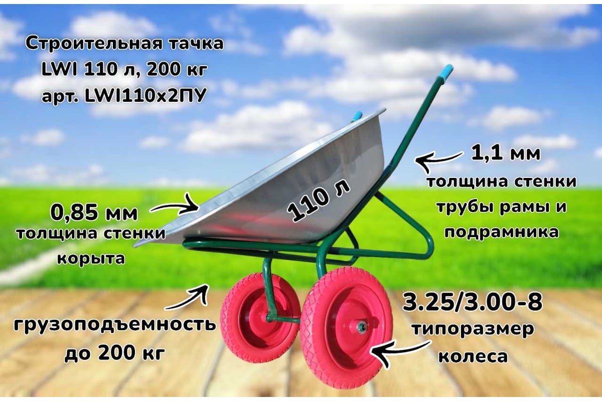 ТАЧКА строительная 110 л 200 кг двухколесная LWI