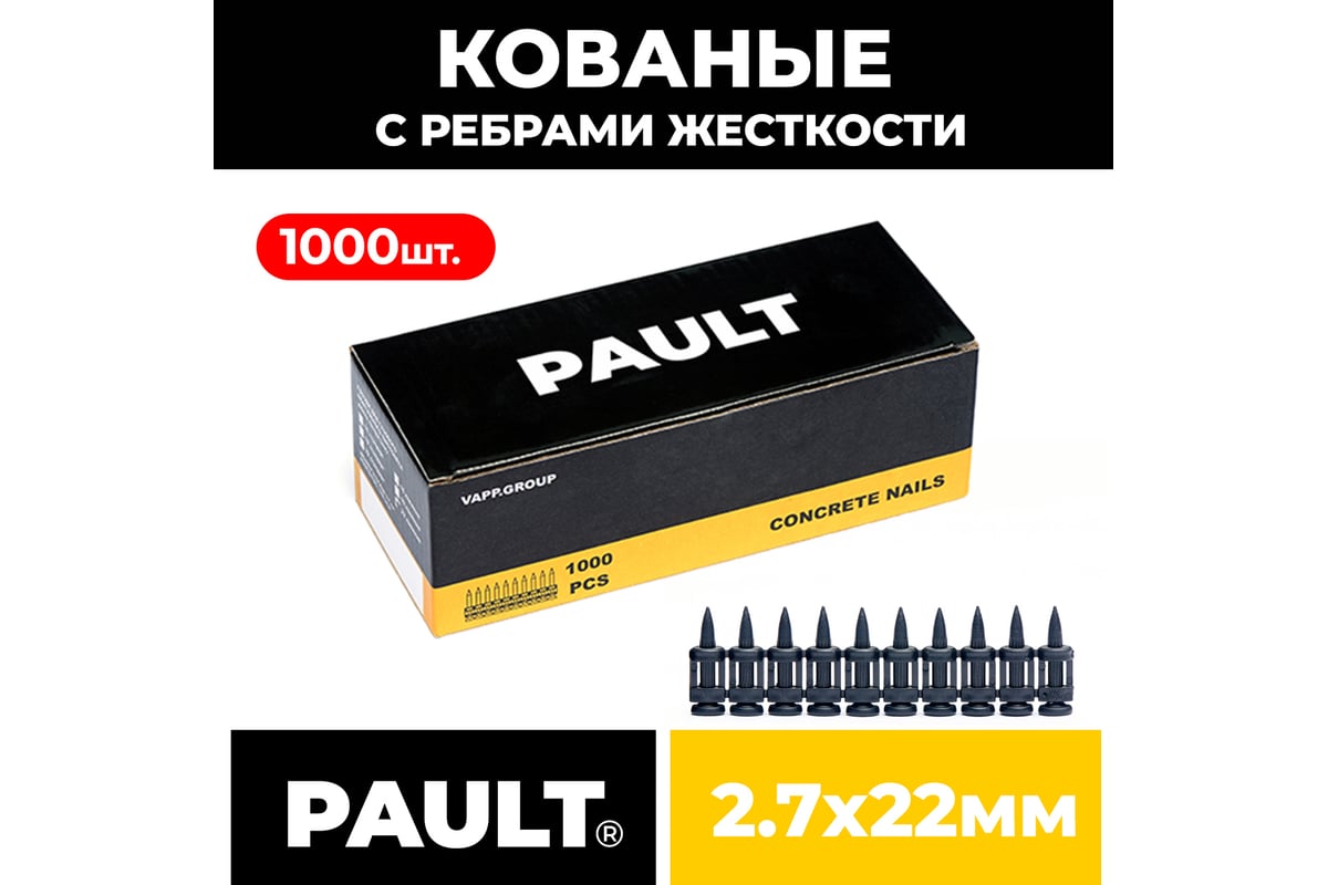 ГВОЗДЬ по бетону 2,7х22 мм 1000 шт PAULT