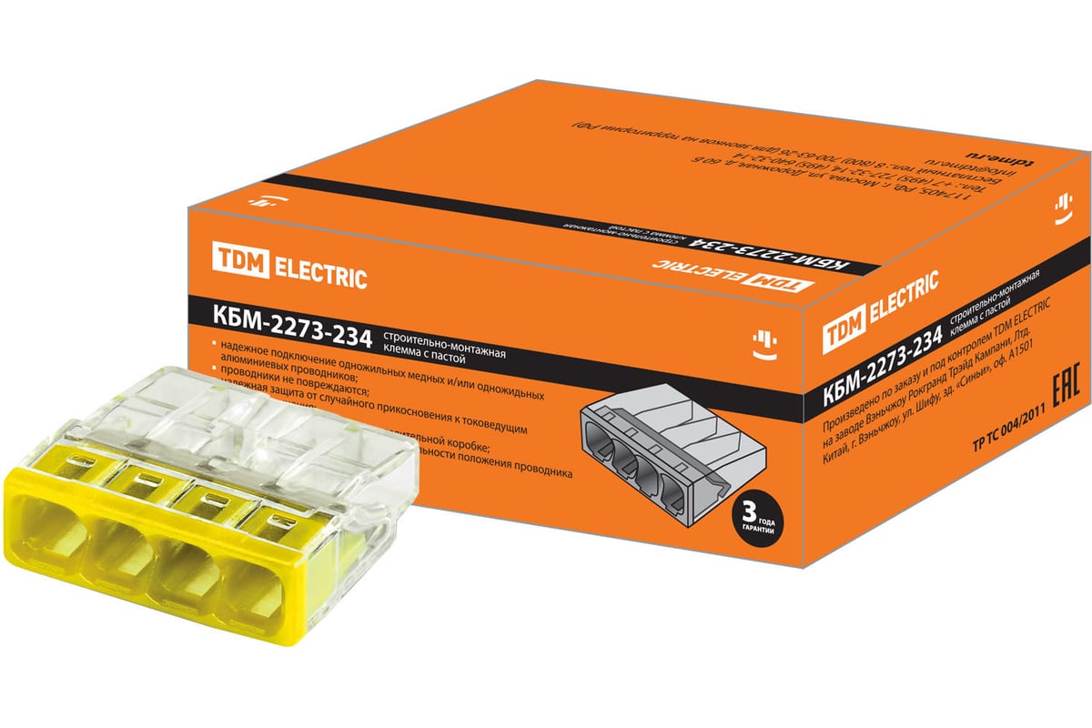 КЛЕММА 4-проводная 2,5 мм2 16 А с пастой КБМ-2273-234 TDM