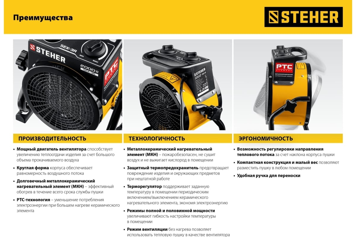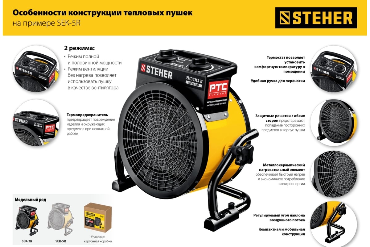 ПУШКА тепловая электрическая 3,0 кВт STEHER