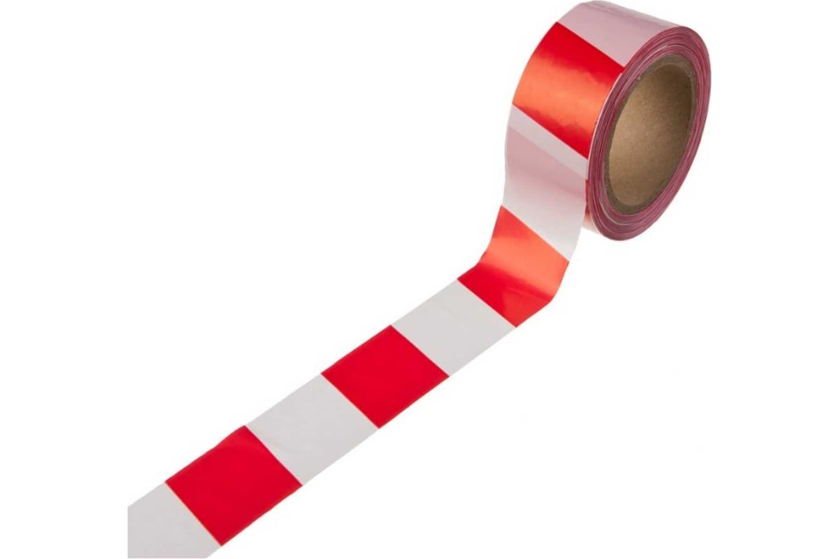 ЛЕНТА сигнальная 50 мм 35 мкм 200 м полоски цв. красно-белый
